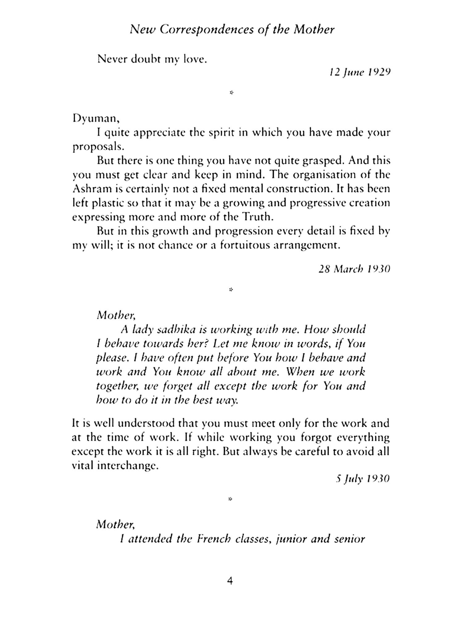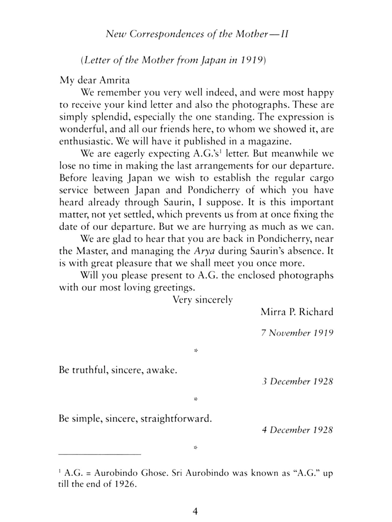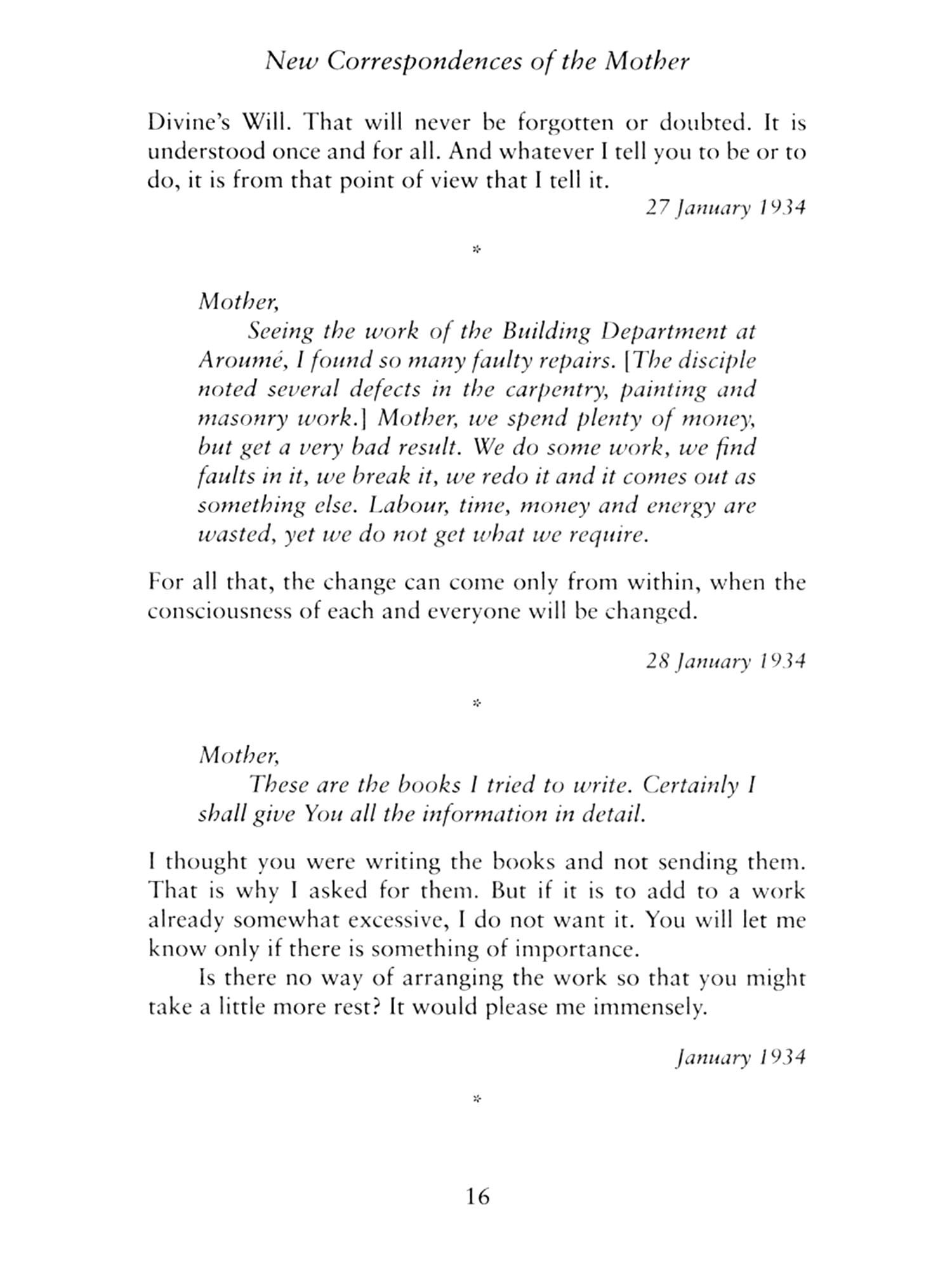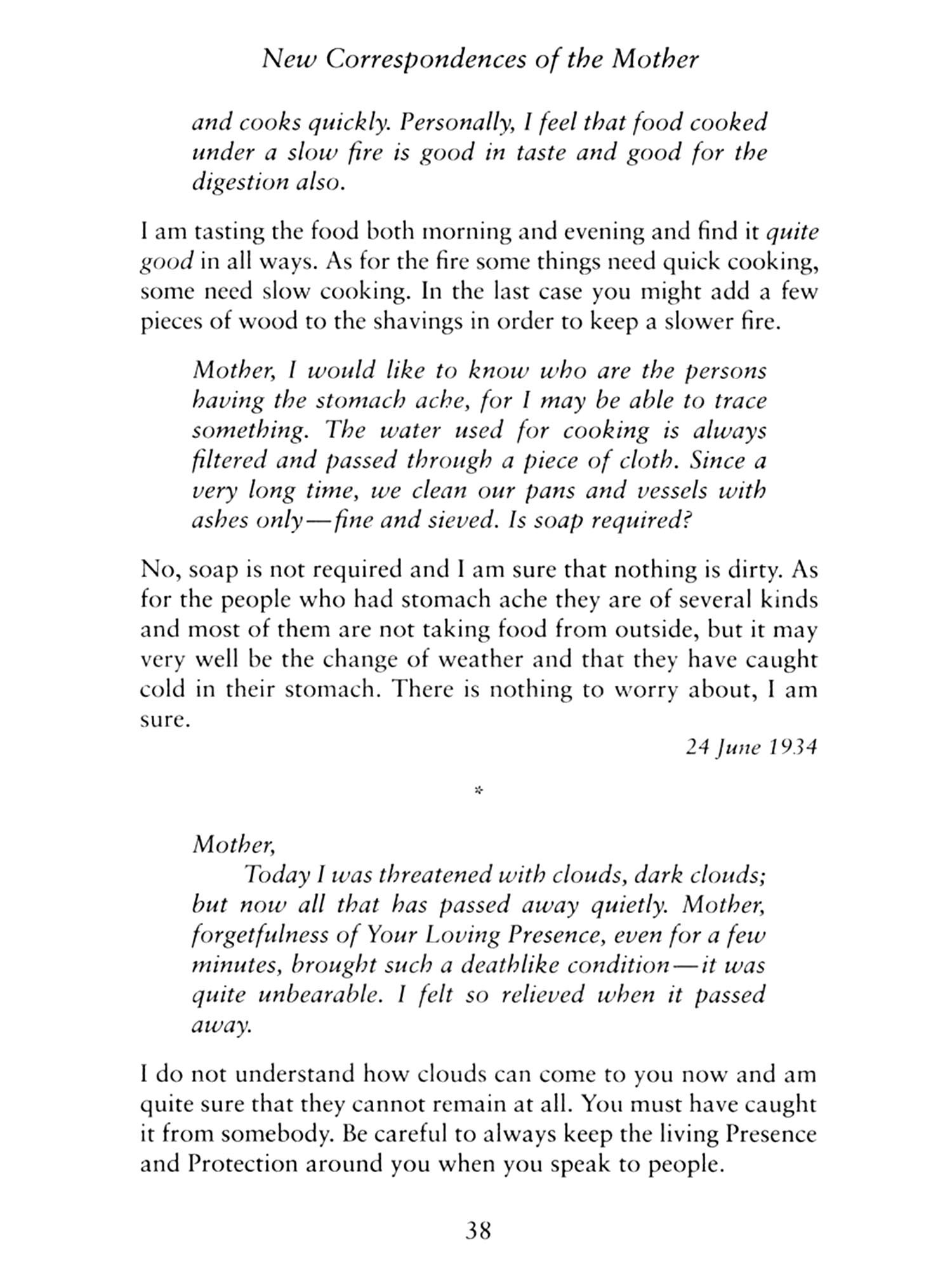 This volume consists of twelve correspondences of the Mother that are not published in her Collected Works. Some correspondences are short, others are long, but each has its own character. With one exception the correspondents were members of the Sri Aurobindo Ashram.