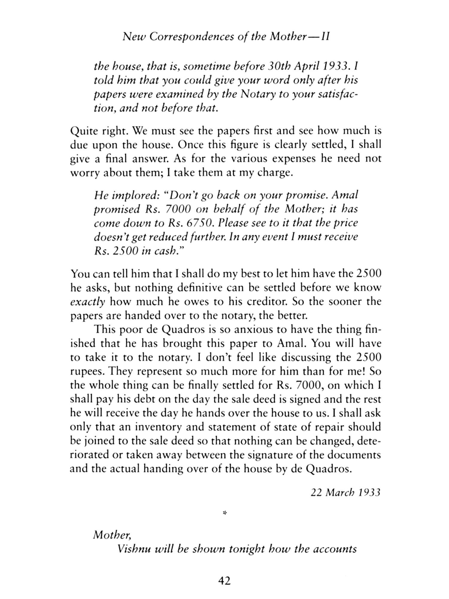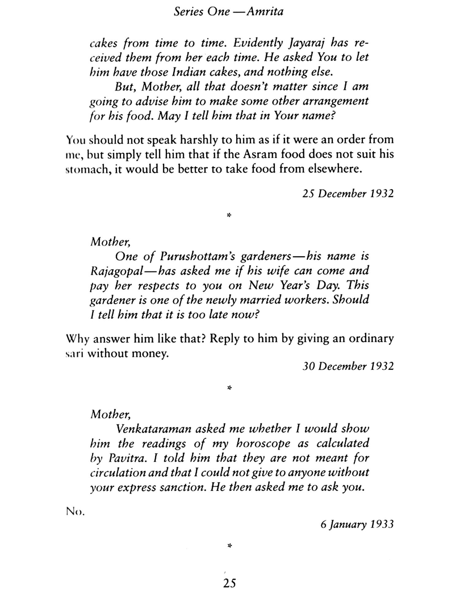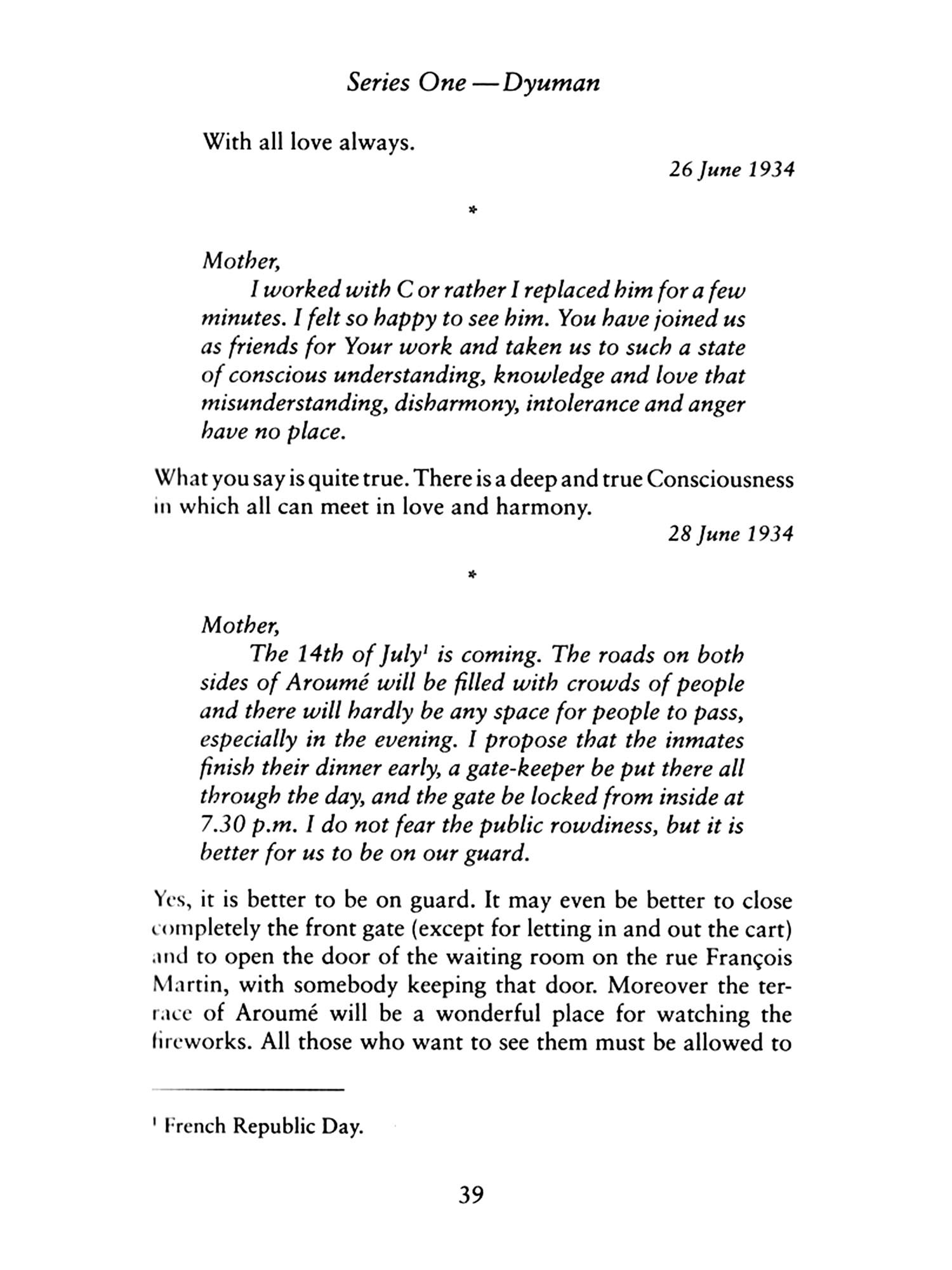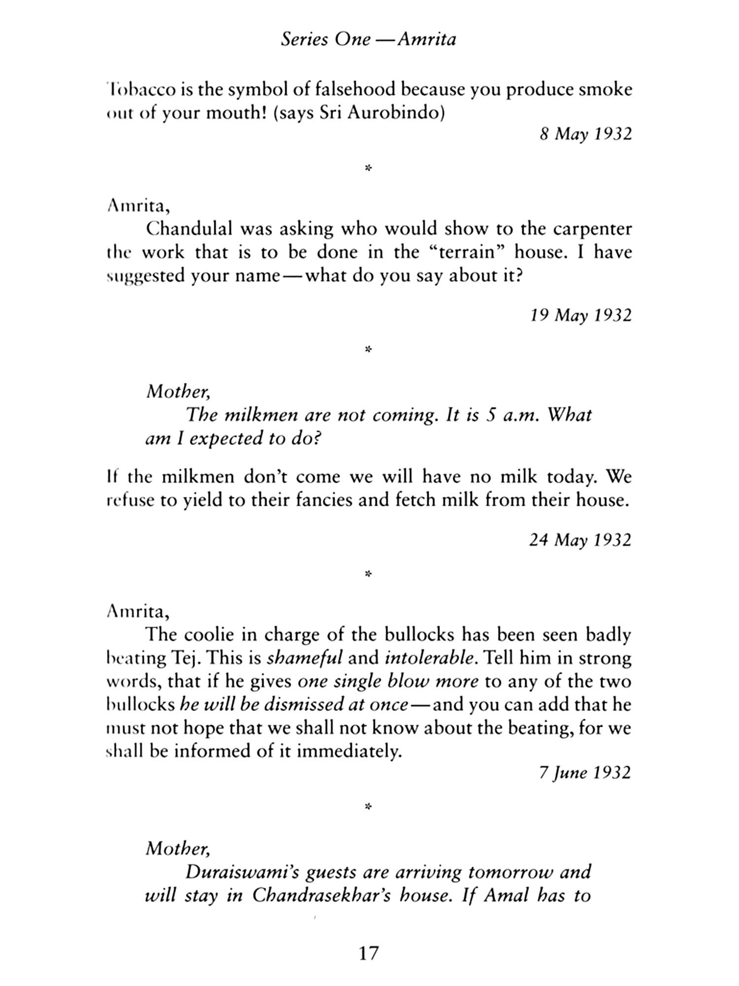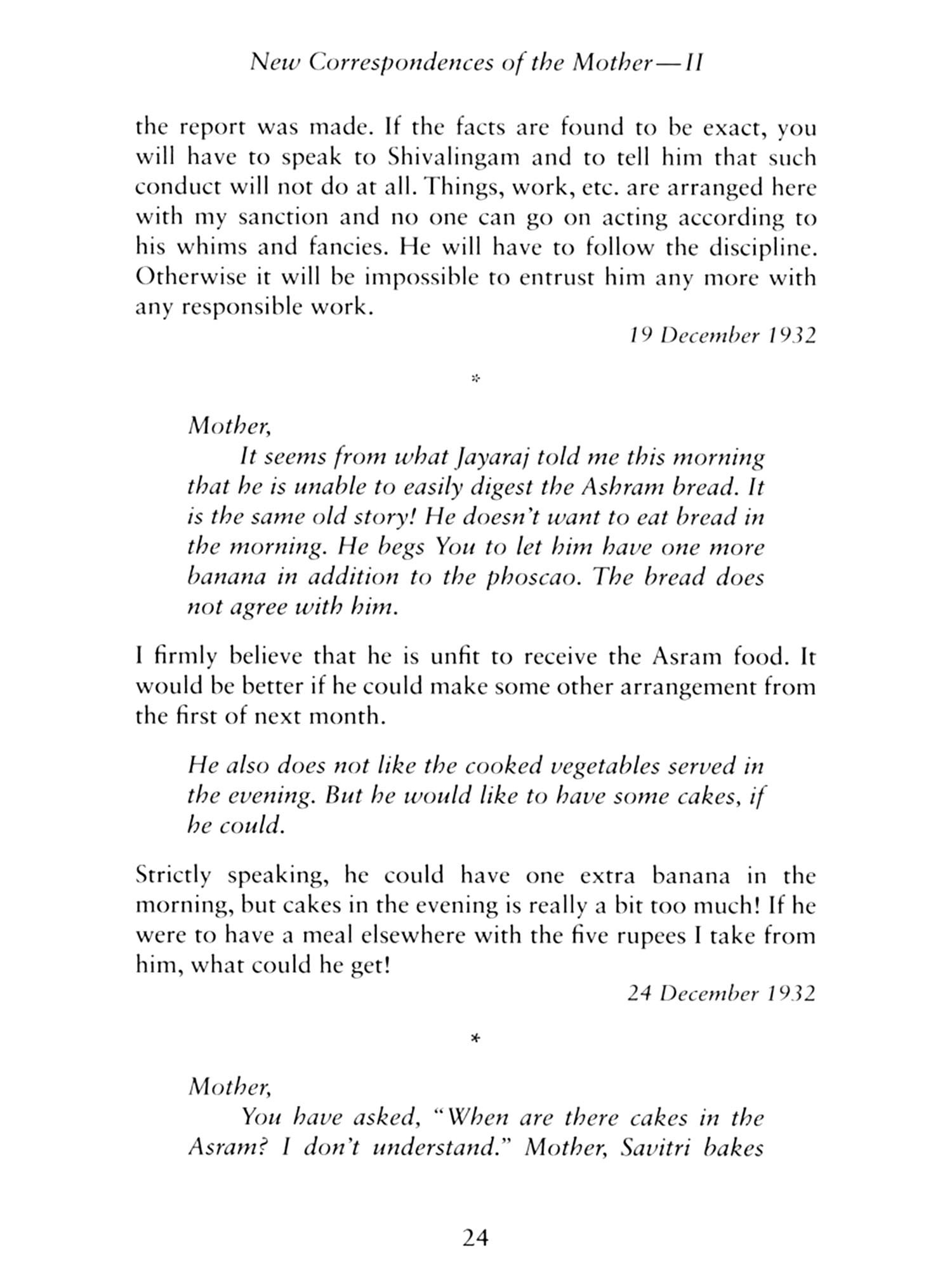 This volume consists of twelve correspondences of the Mother that are not published in her Collected Works. Some correspondences are short, others are long, but each has its own character. With one exception the correspondents were members of the Sri Aurobindo Ashram.