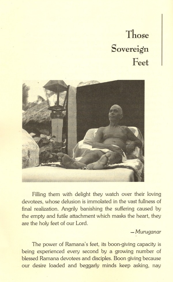 In order that we may enjoy the beatitude of the Ramana Way, in the quote referred to earlier Muruganar is inviting us to join him on a trip to the holy land of Ramana. He tempts us. It is a land of mukti or liberty. Liberation from what? From hitching our happiness to dame fortune, to people, circumstances, to ideas and what not. He promises freedom, from illusion which has enchained us in a vortex of desires and fears. If we do not lose sight of Ramana who is our only sure guide on the path, we would be experiencing the natural state of joy and silence of the mind. We would behold 'All heaven's splendour'. The bright sun of knowledge would be falling on every deed of ours.