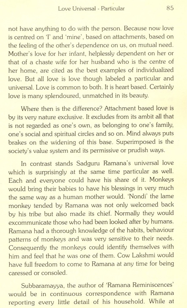 As one treads on the Ramana path the mind works in all cylinders. One is energized all the time for there is no dissipation of its energy though purposeless thoughts. Unconscious power is there as an undercurrent enabling one to be tentative, detached, while at the same time being totally involved in the job on hand or while reading to people. In the transformed life everything is clothed with the Lord’s beauty. The mind is floating in bliss and the heart is overflowing with love.