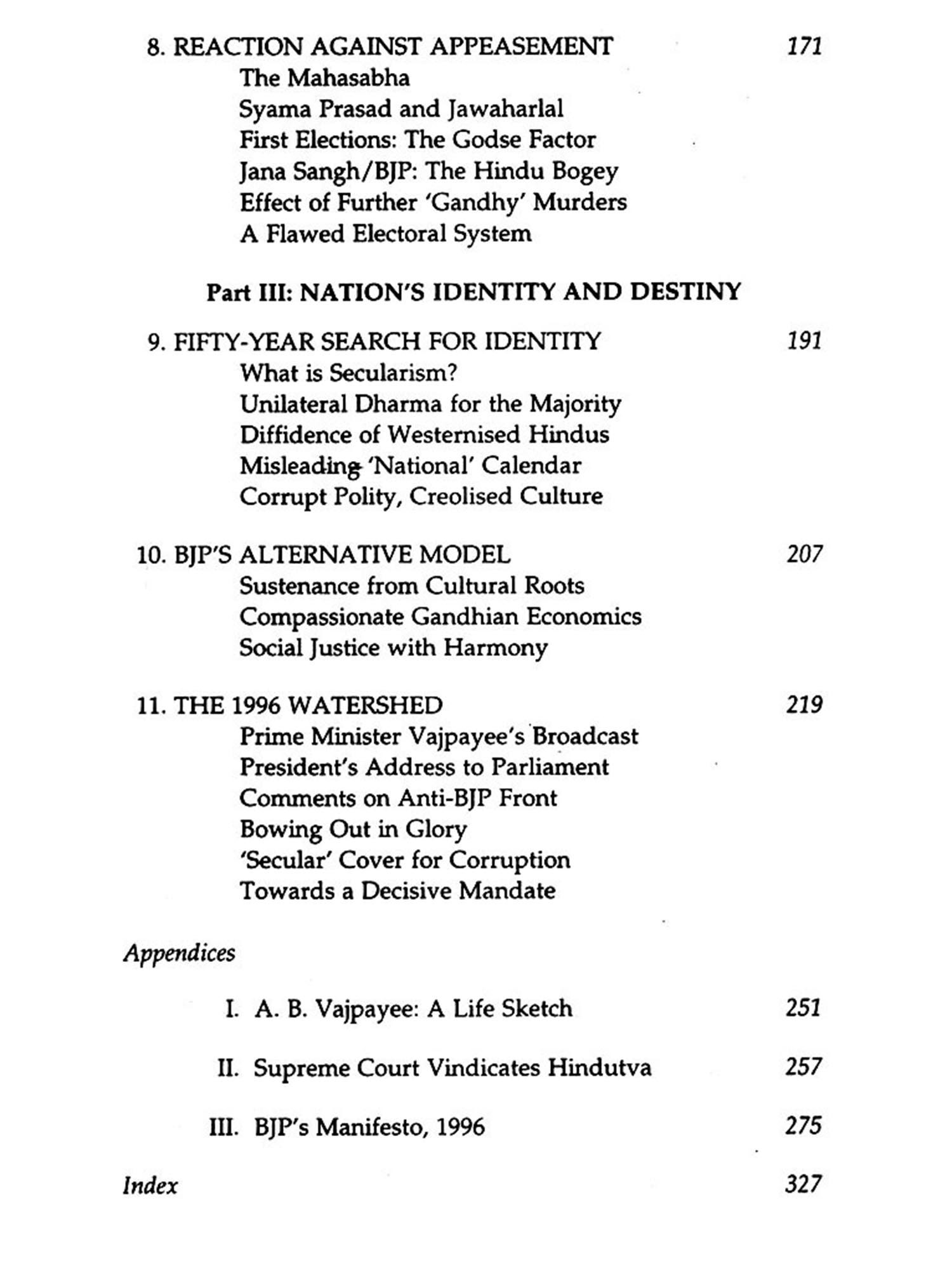 The author sees the rise of the Bharatiya Janata Party, under Vajpayee's leadership, to first position in the eleventh Lok Sabha as more than an episode in the history of elections in free India. It marks the electors' increasing realisation that other political parties have been disrupting Indian society by continuing, in order to secure more votes, the British colonialist policies of religious minorityism in the name of secularism, and of caste antagonism in the name of social justice.