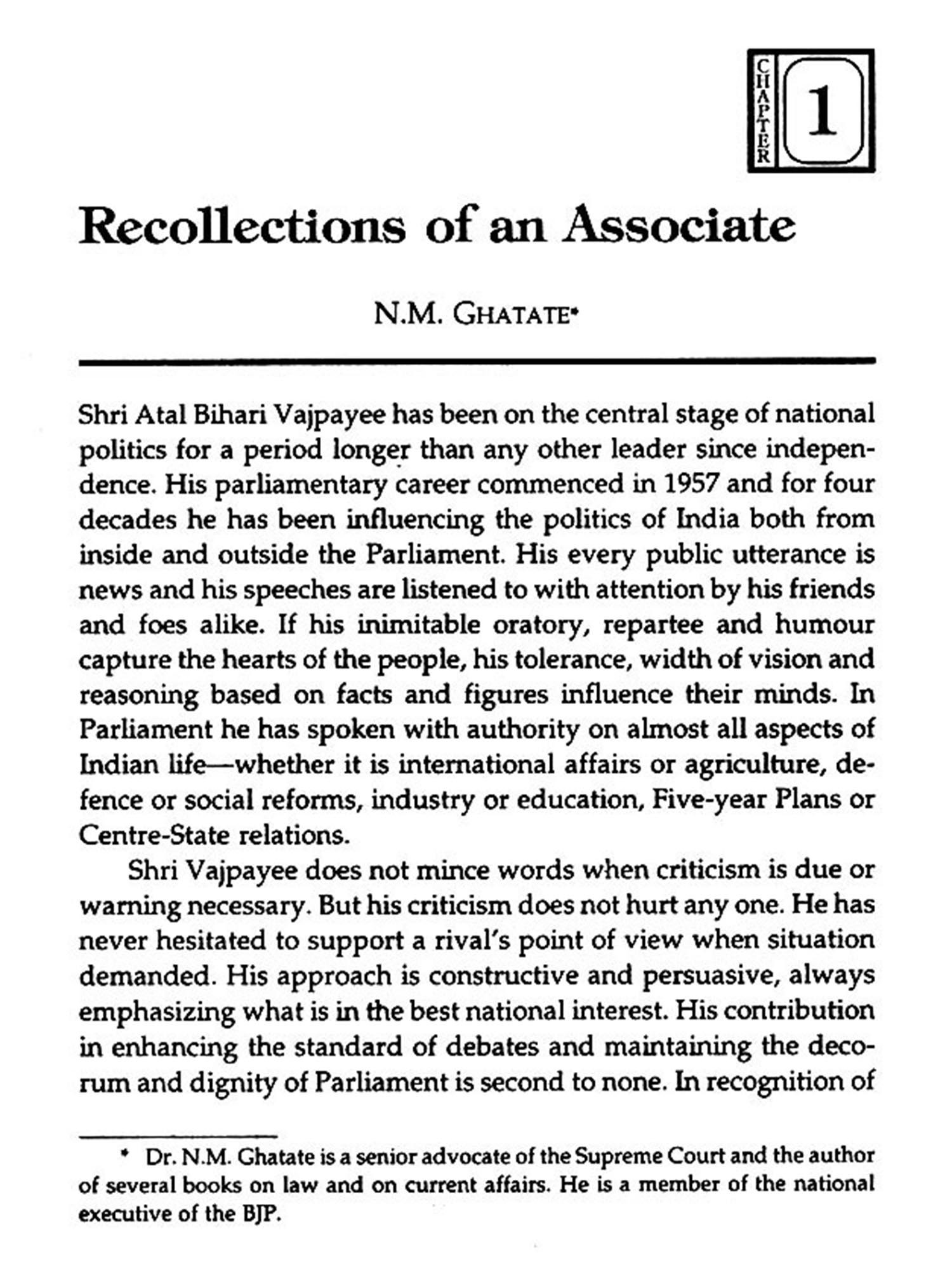 This book presents, in the opening part, pen portraits of Vajpayee by some who have worked closely with him. Also his views, in his own words, on major problems faced by the country.