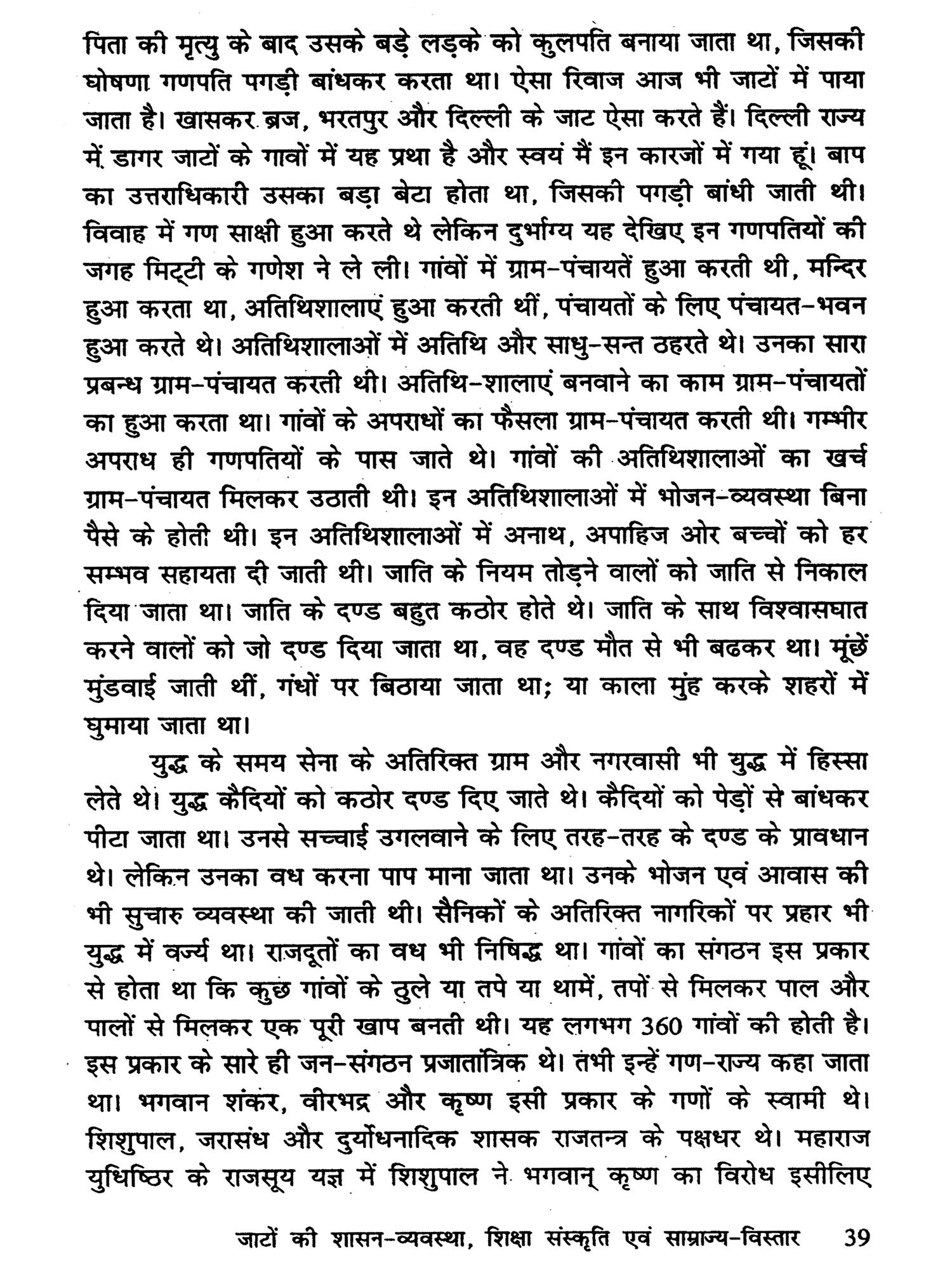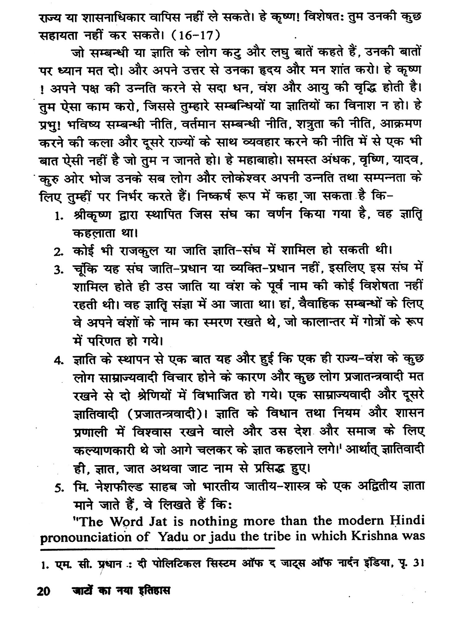 इस पुस्तक के पाठक जाट जाति की प्राचीन गरिमा, विश्व-संस्कृति को उसी देन, राष्ट्र के रूप में भारत की स्थापना के उसके प्रयास आदि को भली प्रकार समझ सकेंगे, ऐसा मेरा विश्वास है।