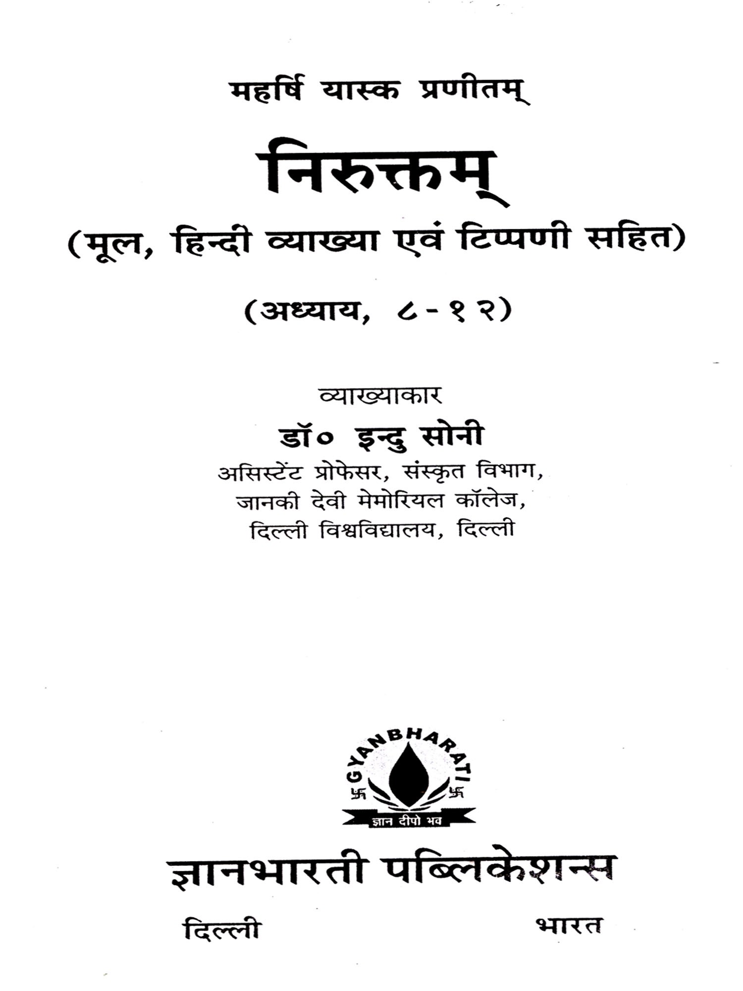 निरुक्तम्: Niruktam- Original, with Hindi Explanation and Commentary (Chapters 8-12)