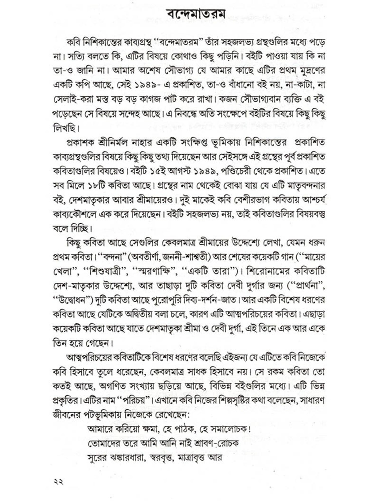 নির্বাচিত কবিতা: Nirbachito Kabita (A Collection of Selected Bengali Poems) An Old and Rare Book)