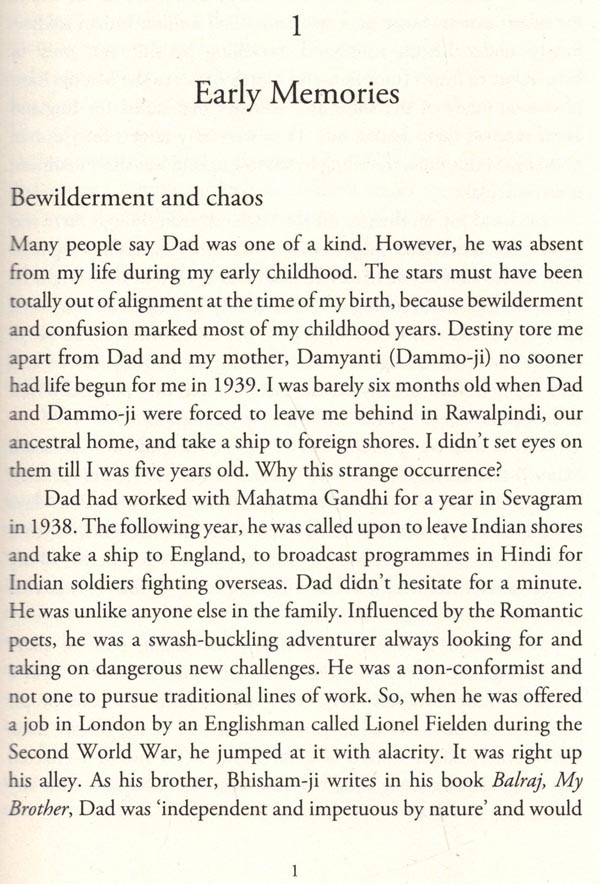 Balraj Sahni Marg (road). Perhaps this should conjure up a vision of a grand road, named in honour of a stalwart hero, of a person whose memory lingers on long after he has gone from the world. A simple name on a signpost, which commemorates the contributions of an iconic man, of an individual who deserved every accolade showered on him-this street celebrates the prestige of a simple man who rose to awe-inspiring heights. The street runs in front of the house my father, Balraj Sahni, built in the late '60s. He proudly named his house Ikraam, a word that was synonymous with the character of the man who lived in it-generous and hospitable to all.
