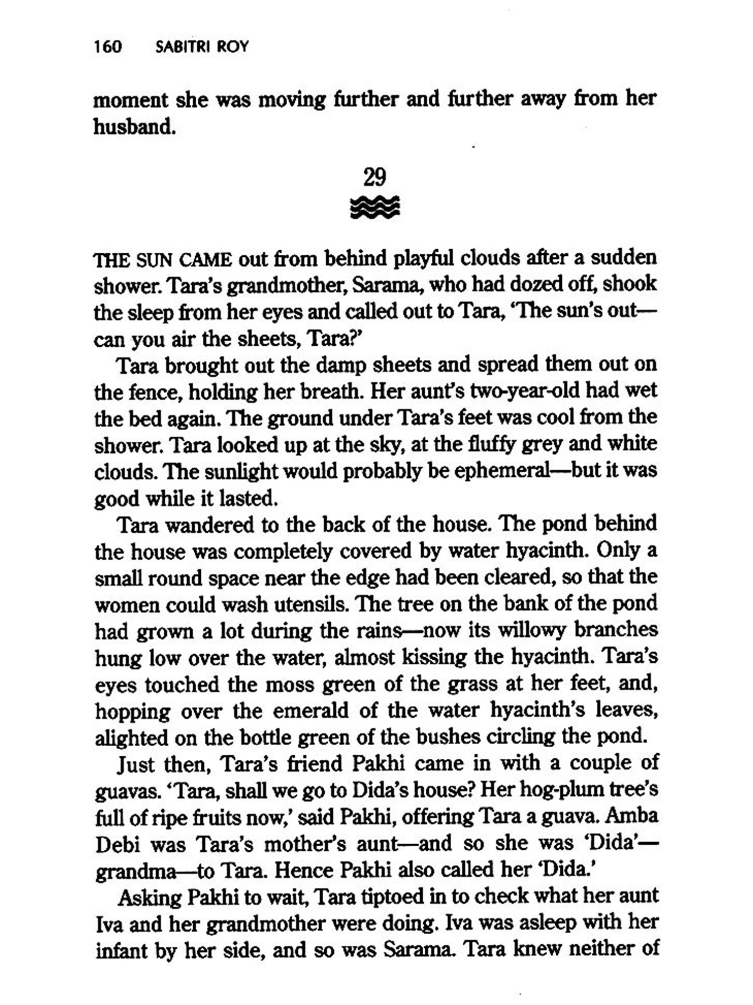 Sabitri Roy (1918-1985) wrote short fiction, poetry and children's literature, but novels were her preferred genre. Most were built on an epic scale, two being trilogies: Paka Dhaner Gan and Meghna Padma. Rarely noticed in the Bengali literary world in her lifetime even though there were Malayalam translations of most of her novels-feminist scholars have recently recovered a sense of her importance. They, however, classify her as primarily a partition novelist, or as a women author, focusing on women's lives.