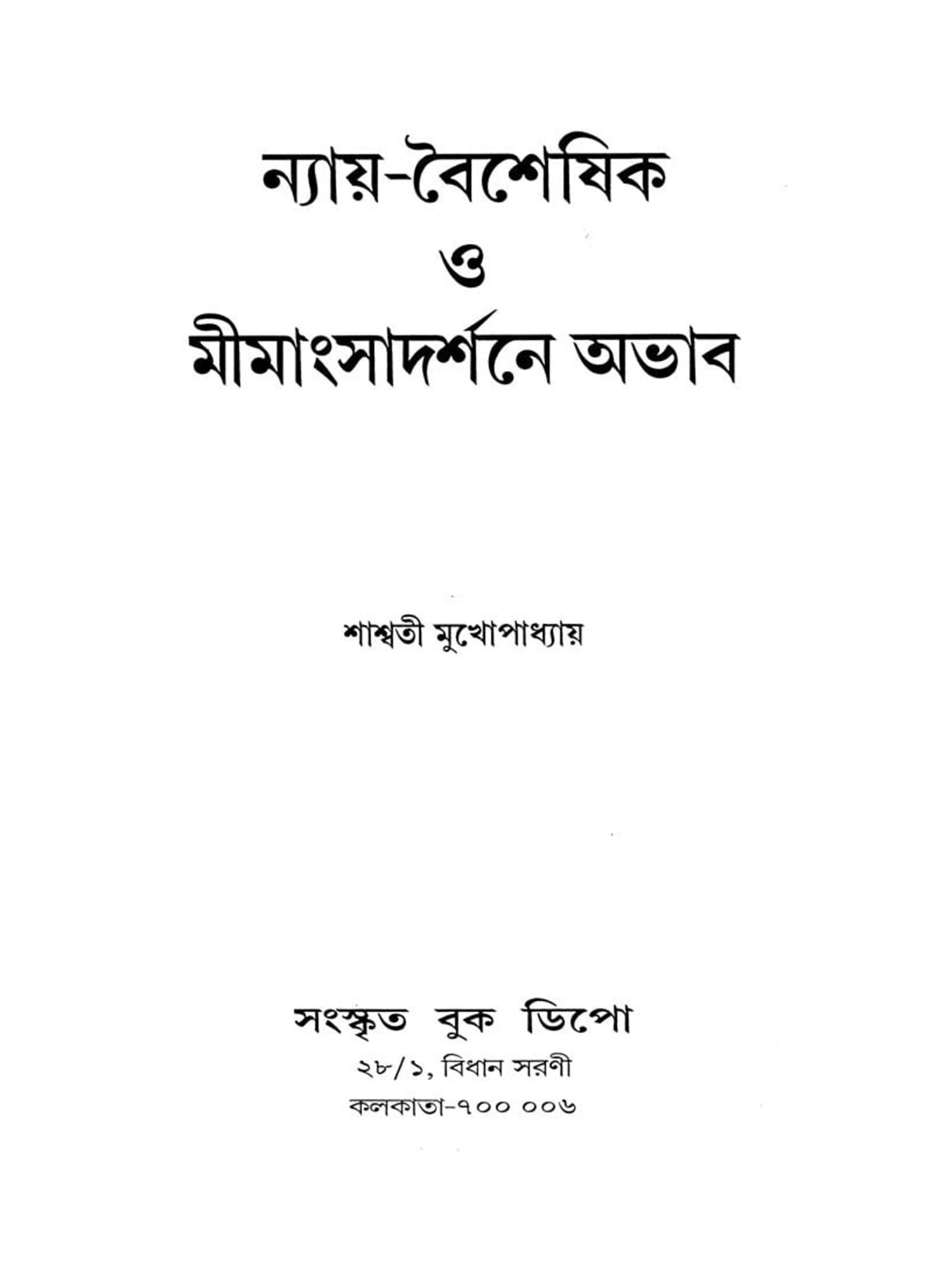 Nyaya- Vaisesika Sammata Visesa Padartha: Ekti Samiksa (Bengali)