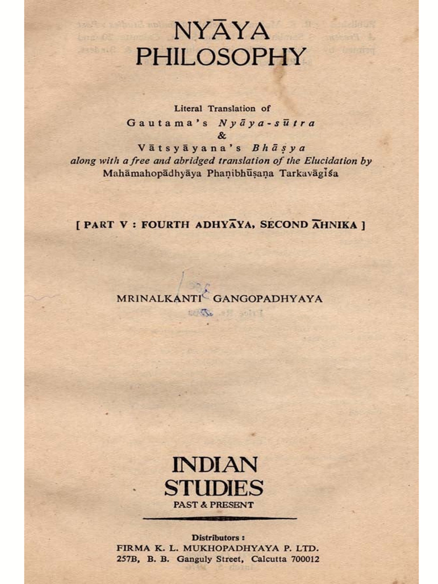 Nyaya Philosophy Literal Translation of Gautama's Nyaya-Sutra & Vatsyayana’s Bhasya Part - 1 (An Old and Rare)