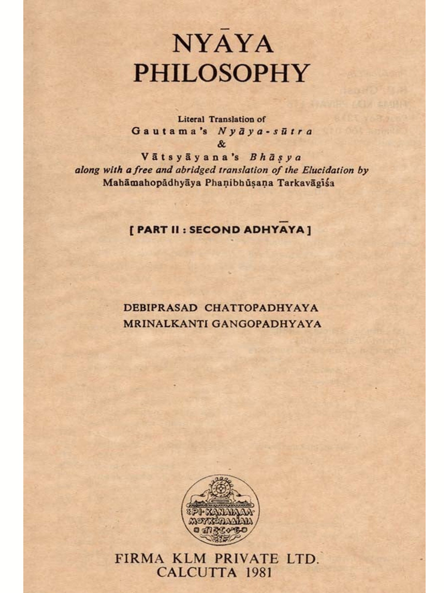 Nyaya Philosophy Literal Translation Of Gautama'S Nyaya-Sutra & Vatsyayana’S Bhasya Part - 2 (An Old And Rare)
