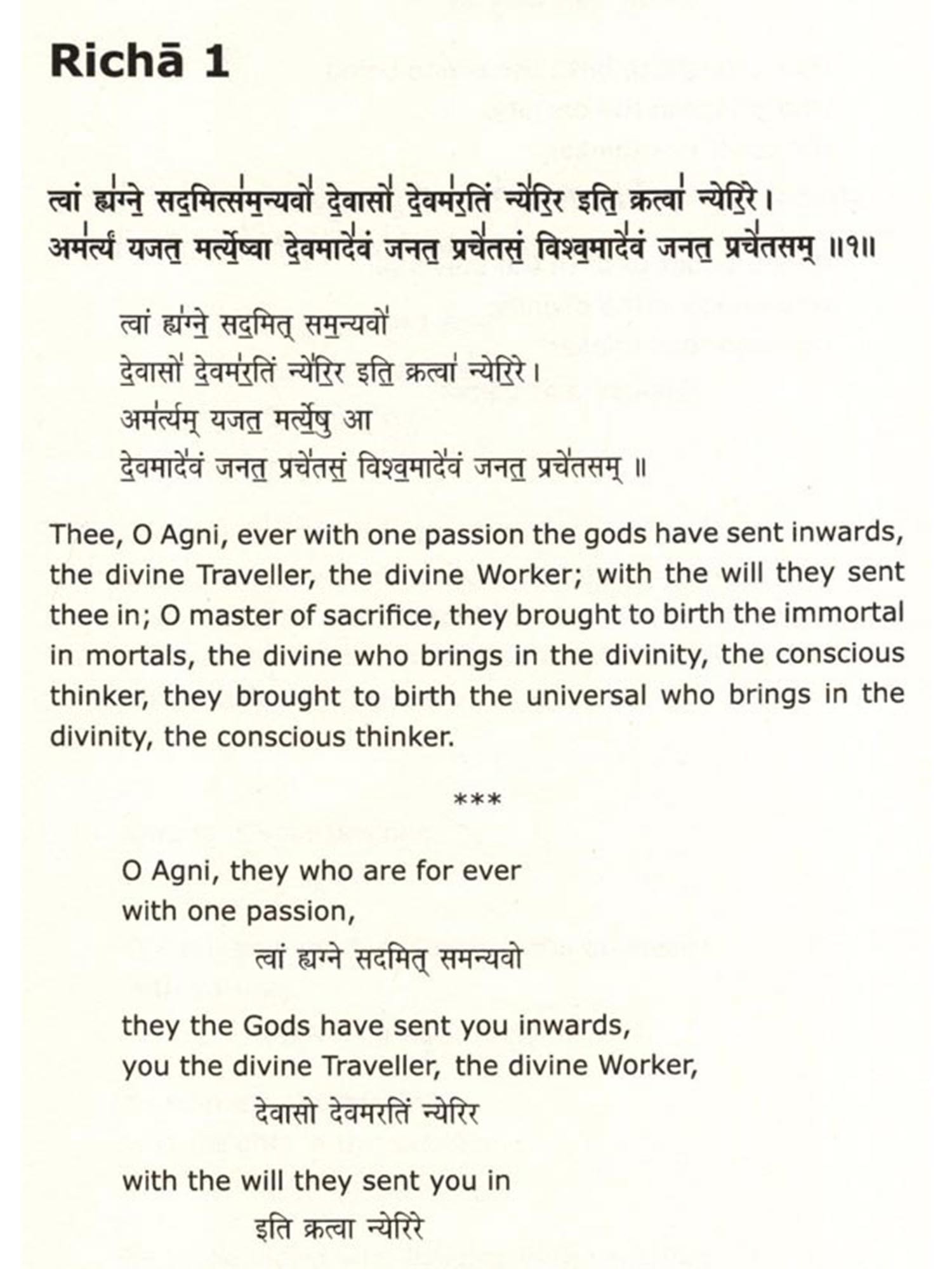 Let this be an invocation to the Fire, invocation to Agni, Agni who lights the suns, who lights the suns in the sky, who kindles the suns in the sky. Let Agni light the suns in Matter too, in the earthly Matter, let Agni light the suns in Matter too, in Matter too, in the living Matter, in the body, in the cells of the body. Let Agni light the suns in the cells of the body, let them be aglow with his Blaze. Let Agni kindle them in the cells of the body, in the cells of the body.