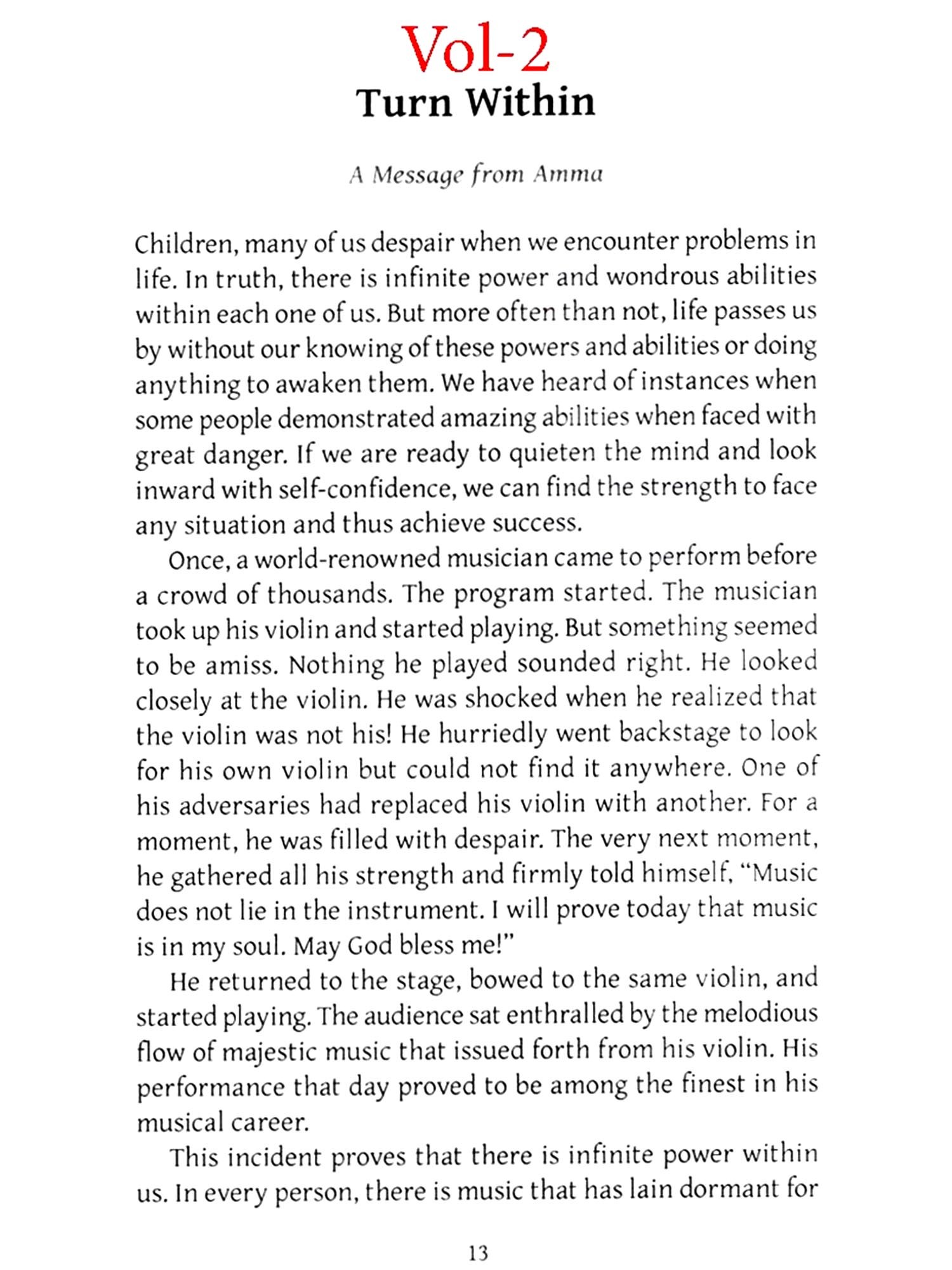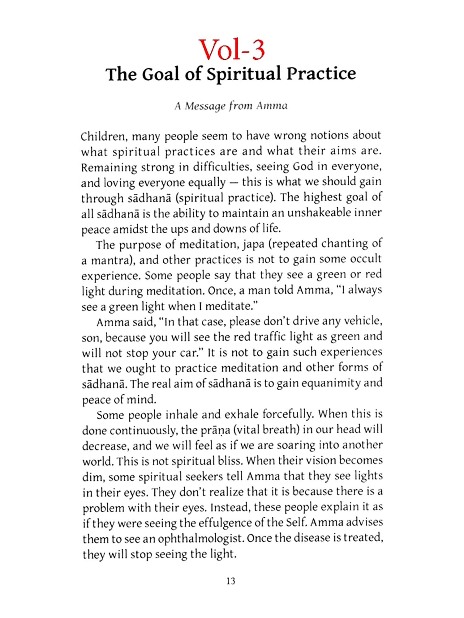 The third way is if one gains total detachment early on, one can take sannyasa without ever having entered into the life of a grihastha. The brahmacharis and brahmacharinis who reside in Amritapuri have no desire for householder life. Therefore, Amma initiates them directly into sannyasa, bypassing the grihastha and vanaprastha stages.