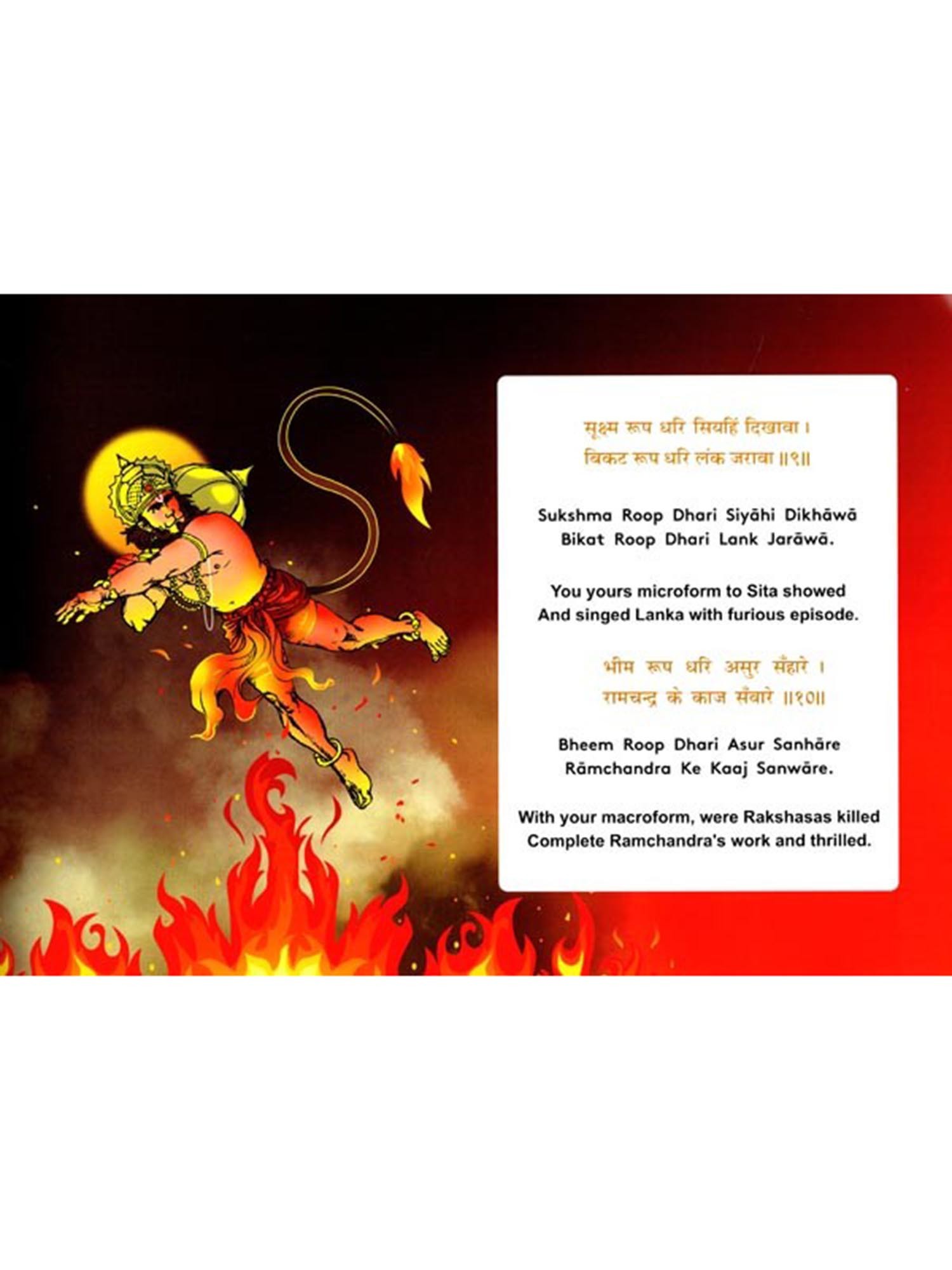 Hanuman Chalisa is a Hindu devotional hymn written in praise of Lord Hanuman. A holy compilation of forty verses and couplets at beginning and end, the mantras epitomizes the unfathomable glory of Lord Hanuman-the biggest devoteee of Almighty Lord Shri Ram. Written by Goswami Tulsidas, a Great poet, Saint, Reformer and Philosopher who is popularly known as the author of Ramcharitmanas, where he retold Ramayana in Awadhi Language. Goswami Tulsidas is also considered to be a reincarnation of Maharishi Valmiki, composer of the original Ramayana in Sanskrit.