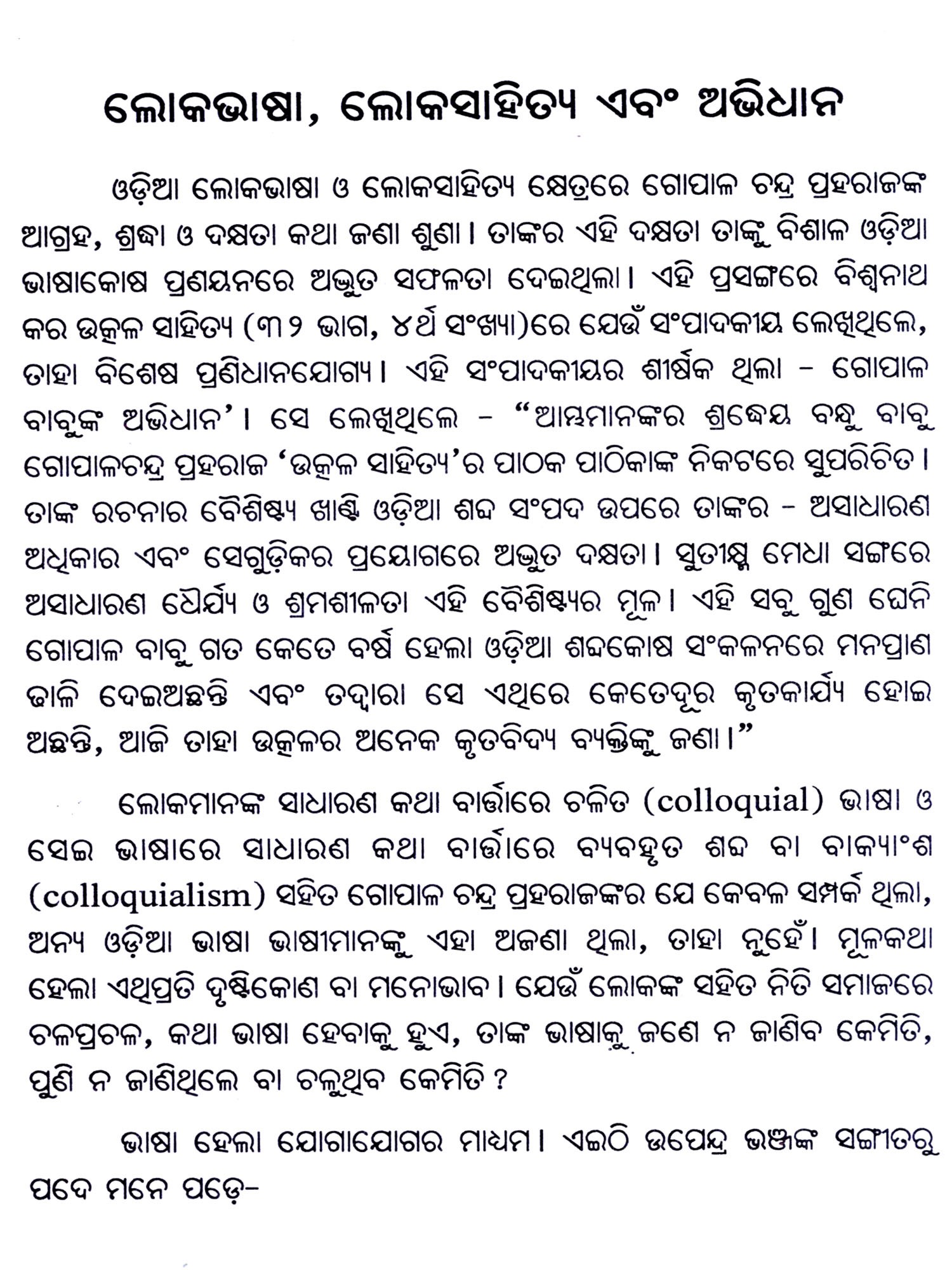 ଓଡ଼ିଆ ଭାଷା, ସାହିତ୍ୟ, ସଂସ୍କୃତି ଓ ପରମ୍ପରା-ଏକ ଦୃପାତ- Odia Language, Literature, Culture and Tradition - A Pillar (Oriya)