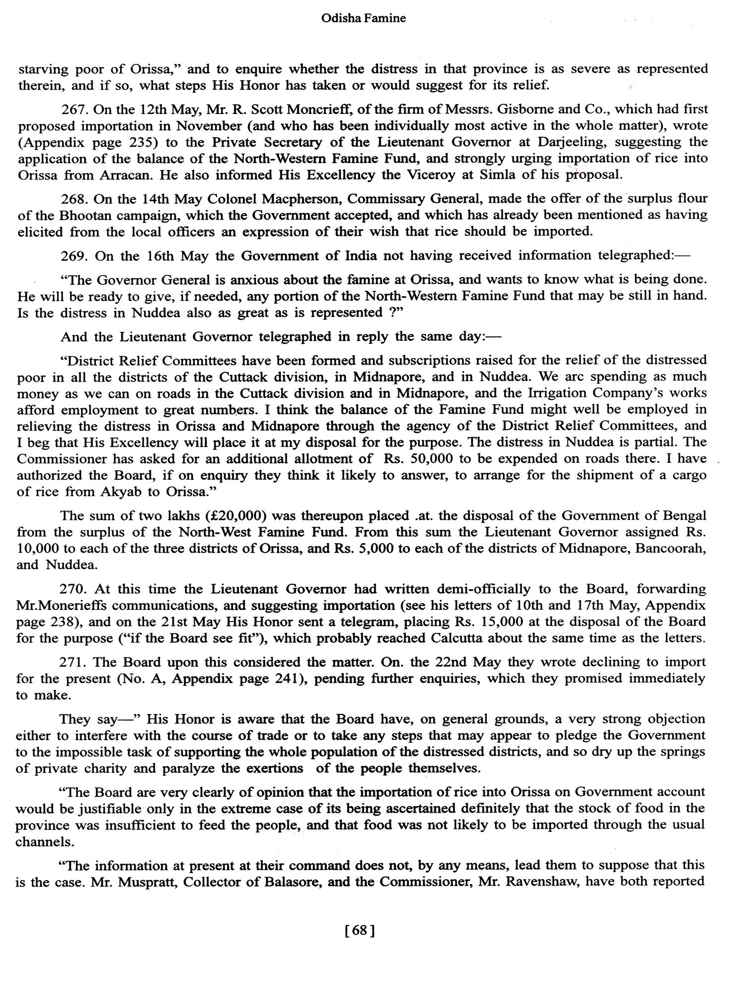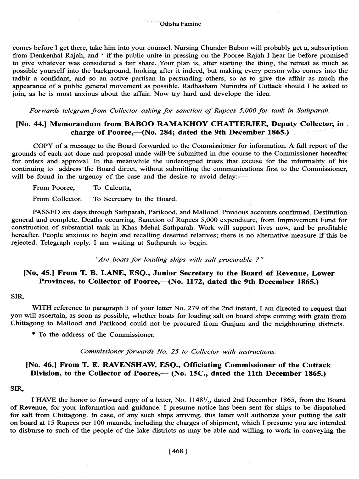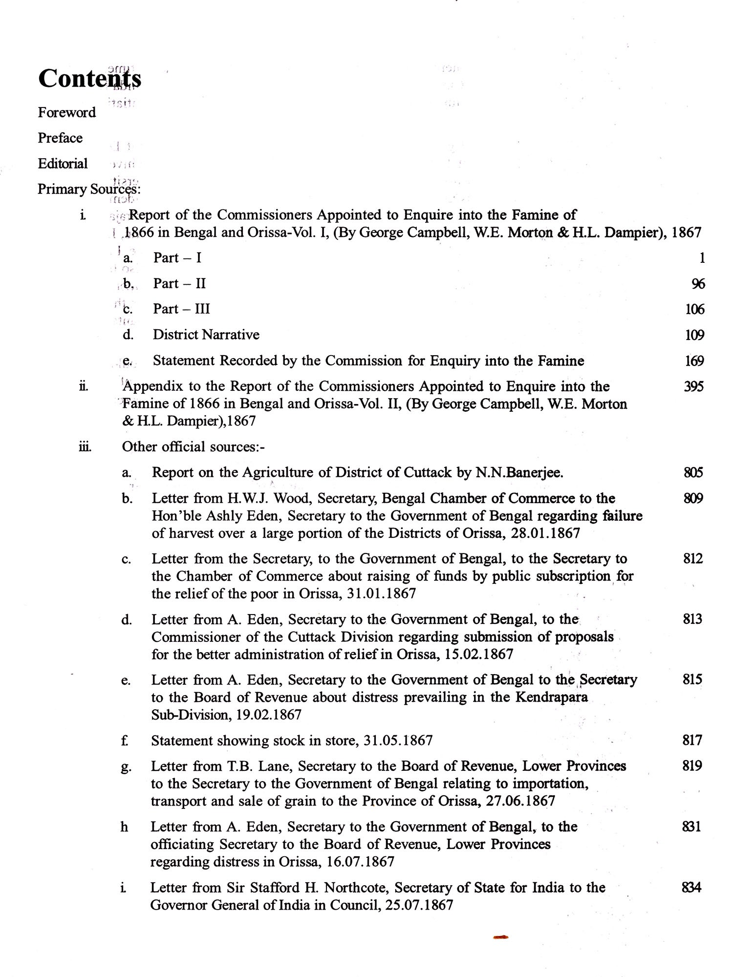 The Famine of 1866 occurred over a wide area, consisting of coastal districts like Cuttack, Puri and Balasore situated in Bengal Presidency and Ganjam district which formed a part of Madras Presidency till 1936, Midnapur and Bankura districts and western part of Burdwan district in the present province of West Bengal and Singhbhum and Manbhum districts of Chotanagpur division and the princely states of Nilgiri and Mayurbhanj were also affected by the Famine. This volume contains records pertaining to Balasore, Cuttack and Puri districts. Due to the damaged condition of records it has not been possible to provide the records in intact condition. We regret our inability in bringing the records out in a perfect form because of the inconvenience mentioned above.