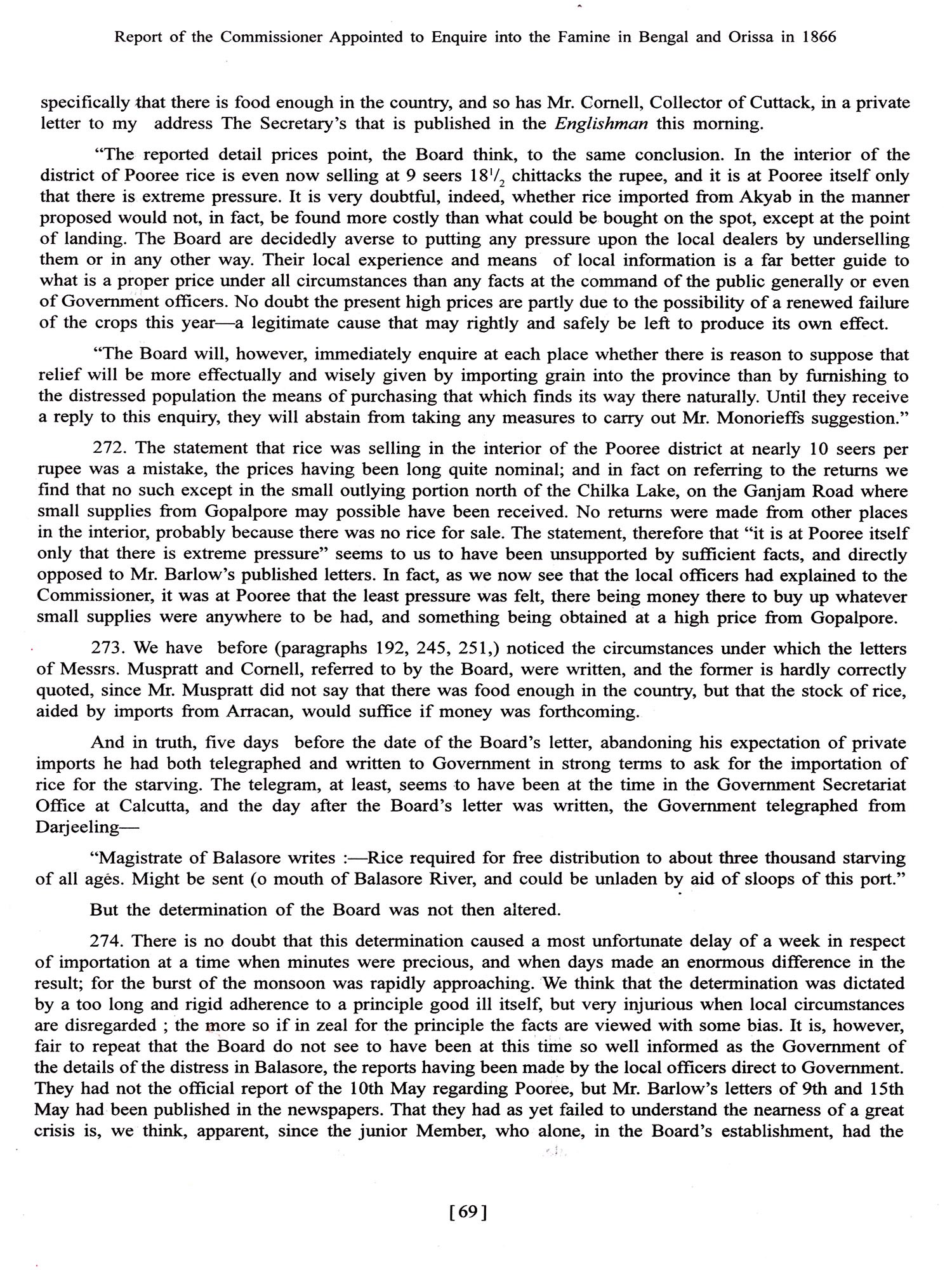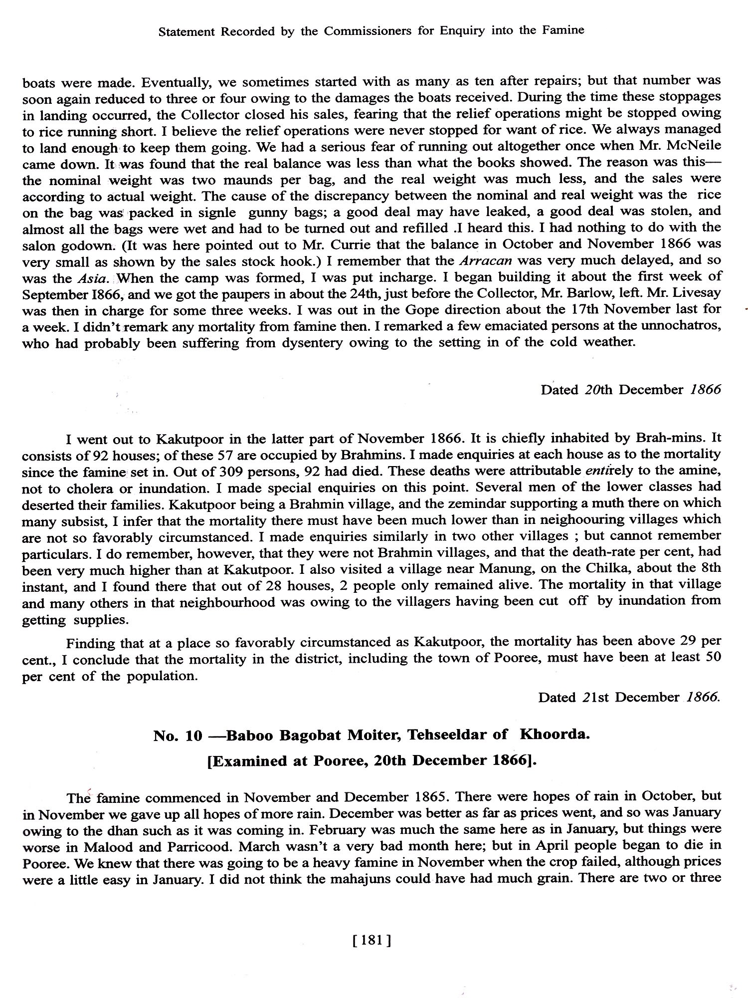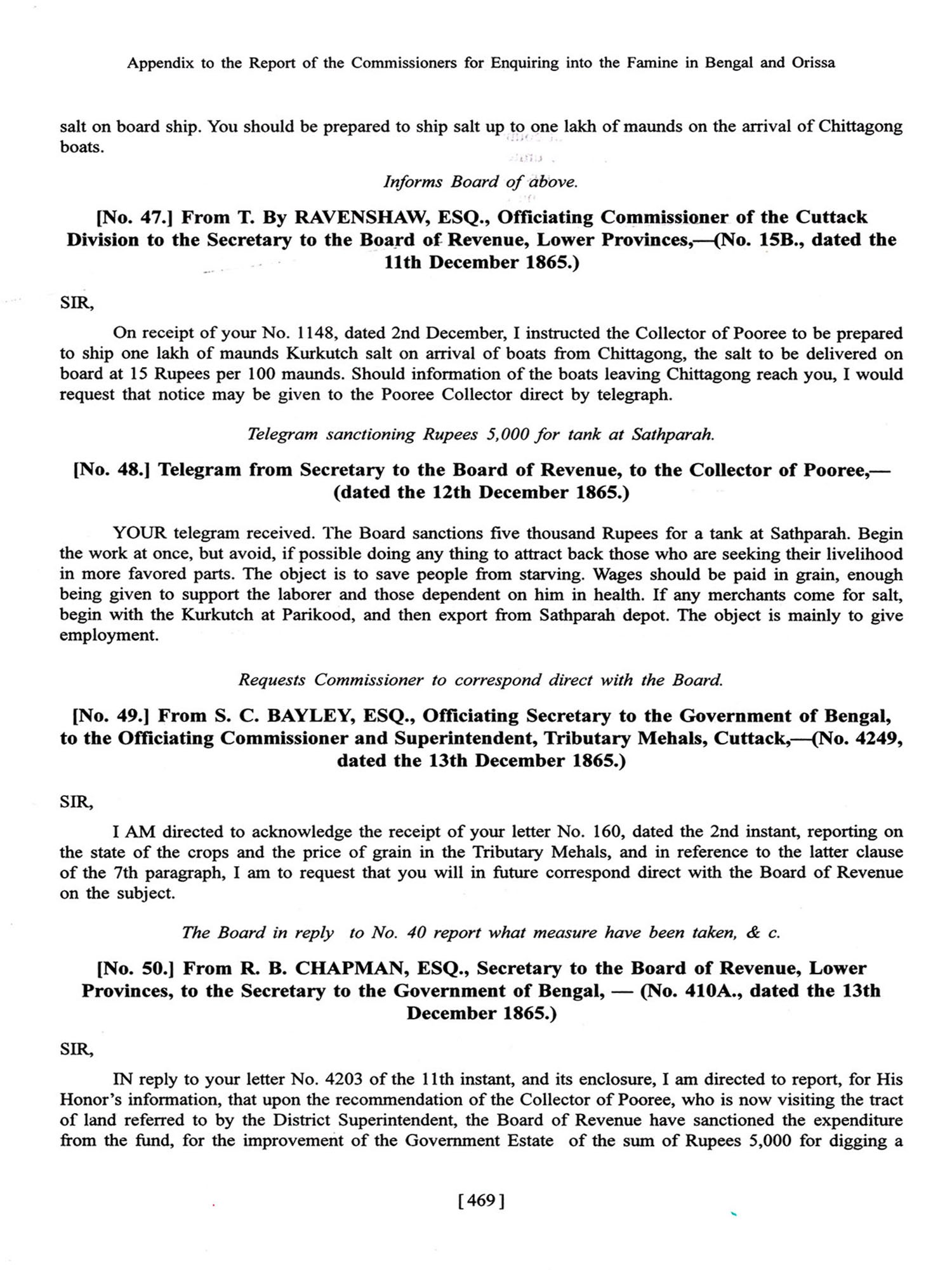 The Famine of 1866 occurred over a wide area, consisting of coastal districts like Cuttack, Puri and Balasore situated in Bengal Presidency and Ganjam district which formed a part of Madras Presidency till 1936, Midnapur and Bankura districts and western part of Burdwan district in the present province of West Bengal and Singhbhum and Manbhum districts of Chotanagpur division and the princely states of Nilgiri and Mayurbhanj were also affected by the Famine. This volume contains records pertaining to Balasore, Cuttack and Puri districts. Due to the damaged condition of records it has not been possible to provide the records in intact condition. We regret our inability in bringing the records out in a perfect form because of the inconvenience mentioned above.