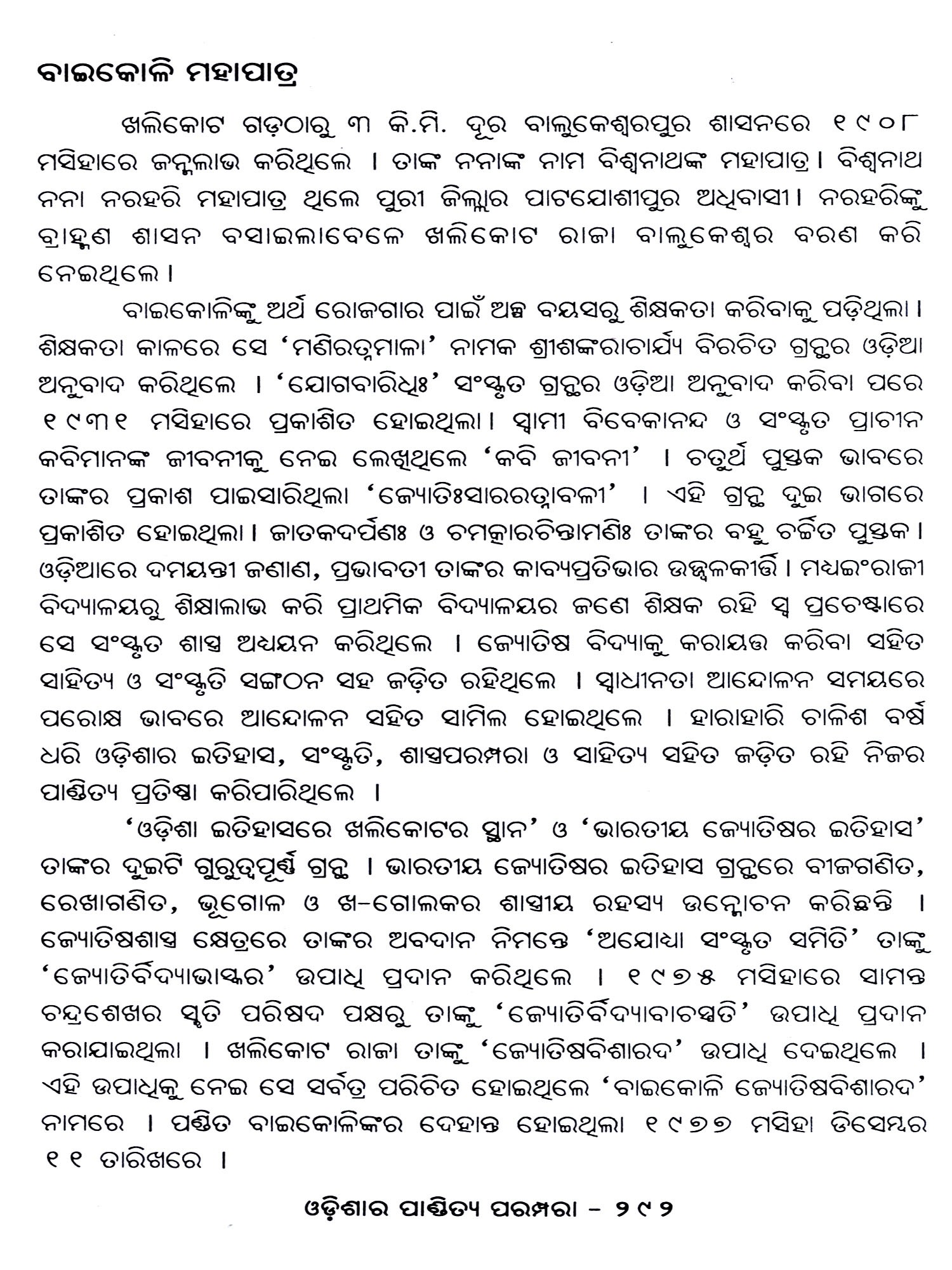 ଓଡ଼ିଆ ଭାଷା, ସାହିତ୍ୟ, ସଂସ୍କୃତି ଓ ପରମ୍ପରା-ଏକ ଦୃପାତ- Odia Language, Literature, Culture and Tradition - A Pillar (Oriya)