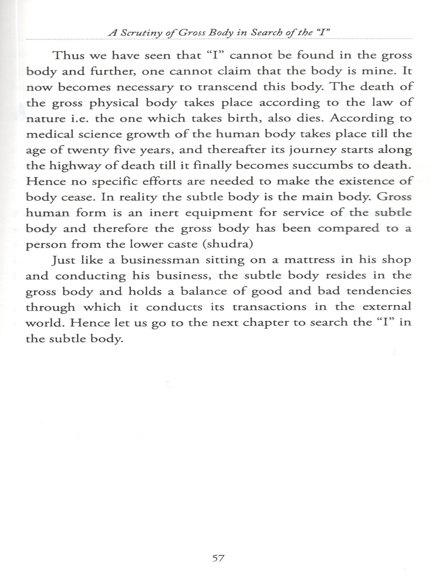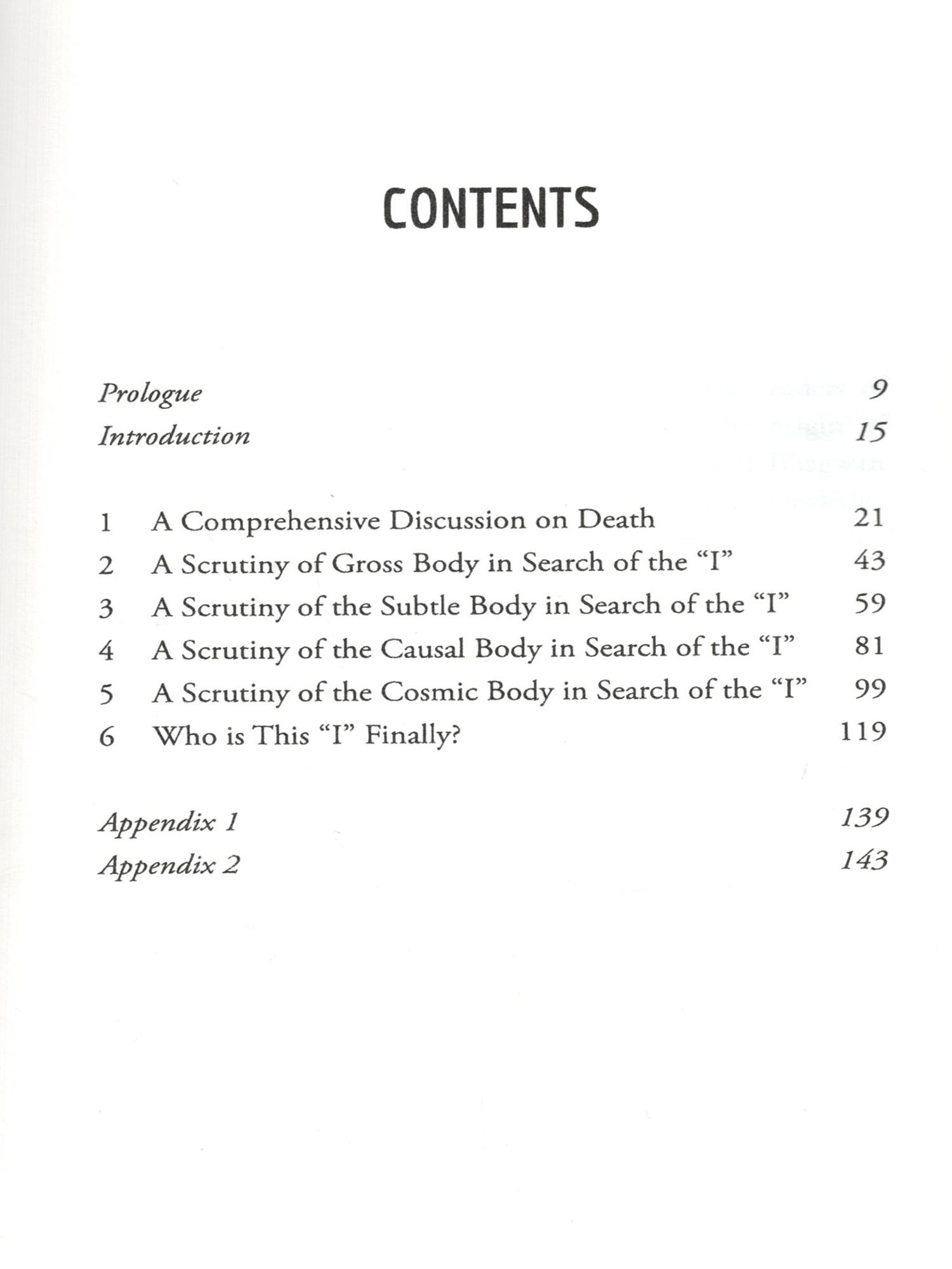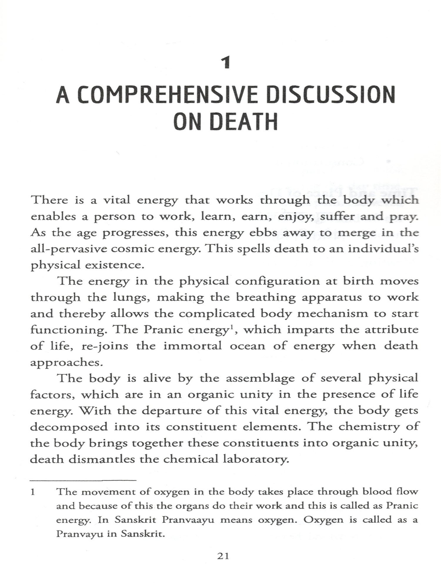 For any journey taken up, due preparations are necessary. First and foremost thing is that one should not have any fear of any sort regarding its safety as to whether the journey would be safe or not. Next, a definite route for the journey has to be chosen. In the same way, if a soul plans its journey to immortality due preparations are needed; but they are of a different kind. First of all a person should be aware of the fact that the entity which undertakes the journey to immortality is quite different from the physical body. Then comes the fear aspect. A person is always afraid of death i.e. end of human life, because various related scenes like bamboo bier, rope, coffin and a hearse van waiting to take the dead body for its disposal (by cremation or burying) etc. come to the mind. Such scenes are quite frightening. Hence before the commencement of the journey to immortality, this fear is to be alleviated. Keeping this point in mind, a comprehensive discussion of death is presented in the first chapter.