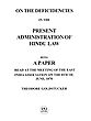 On The Deficidencies in the Present Administration of Hindu Law- Being a Paper Read at the Meeting of the East India Association on the 8th of, June, 1870