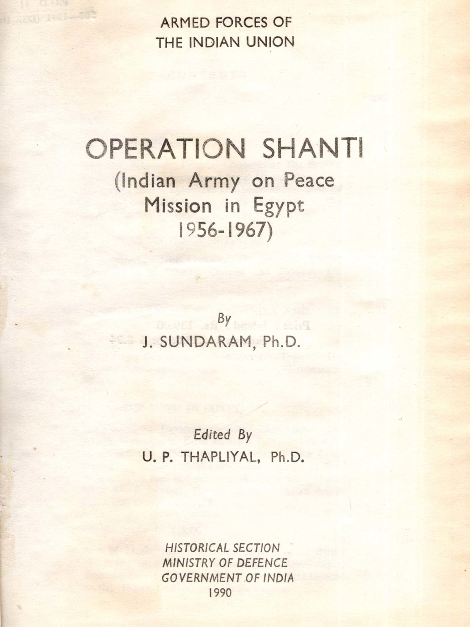 Operation Shanti: Indian Army on Peace Mission in Egypt 1956-1967 (An Old and Rare Book)