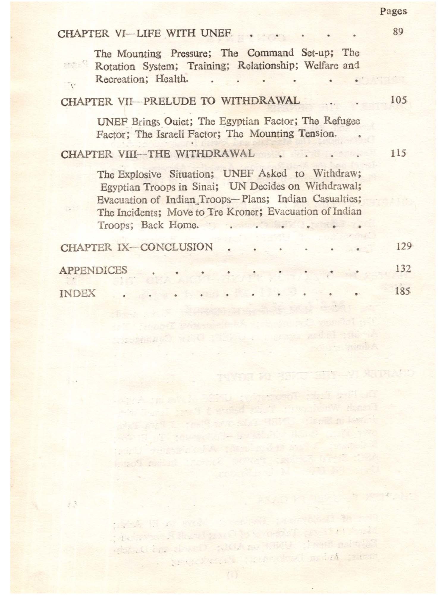 The concept of Vasudhaiva Kutum. bakam (the entire world, a family) was propounded by the ancient sages of India. The ideal was later reflected in the foreign policy proclaimed and practised by independent India. It was no mere coincidence, therefore, that when the need arose for the United Nations to find a force to keep peace between warring groups of humanity it looked to India. India contributed an infantry battalion and some ancillary troops to serve with the United Nations Emergency Force (UNEF), created in November 1956, to secure the cessation of hostilities between Egypt on the one hand and Israel, United Kingdom and France on the other. India's participation in this UN peace-keeping mission was code-named "Operation Shanti". The first batch of Indian troops on peace mission to Egypt left the country in November, 1956. Their actual participation in the peace-keeping, however, started in early December when they entered the buffer zone south of El Cap to separate the Egyptian and Anglo-French forces. Subsequently, they followed the Israeli withdrawal in Sinai. In March the Indian Battalion entered the Gaza Strip to take over its area of responsibility. When they took over from the Israelis on 7th morning the locals greeted them with shouts of "Indians good". The main task of the UNEF was to guard the Armistice Demarcation Line (ADL) and to protect the UN establishments. With this end in view the Indian Battalion established 27 observation posts in its sector of responsibility, extending over an area of 8 miles. Many Indian Battalions served in Gaza by rotation until 1967. Unfortunately, the political situation in West Asia started deteriorating after 1964. It resulted in a fresh war between Israel and Egypt. The UN took a decision to withdraw from the area. But the sudden out-break of war adversely affected the evacuation plan of the Indian troops. Trapped in the war they suffered 14 killed and 45 injured. The Indian troops on peace mission returned back in mid-June 1967, and this rung down the curtain over the UN peace effort in Egypt. UNEF failed to prevent the war between Israel and Egypt but it succeeded in delaying a war by 8 years.