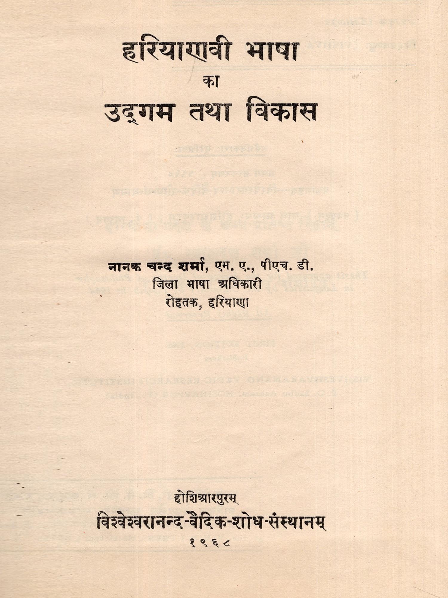 दूसरे यह कि भाषा-संरचना का विश्लेषणात्मक अध्ययन प्रस्तुत करते हुए इस के अन्तर्गत शब्दों के विकास-क्रम पर भी दृष्टिपात कर लिया जाए ताकि प्रस्तुत अध्ययन एक ओर तो यथा-संभव स्वत्तः पूर्ण बन सके और उसके पदग्रामों के अध्ययन में कोई त्रुटि न रह जाए, तथा दूसरी ओर इस भाषा के प्राचीन रूप इसकी अर्थ-विकास-पद्धति का कुछ दिग्दर्शन करवा सकें जिस ने भविष्य के सोच-कर्ताओं को इस ओर ध्यान देने की प्रेरणा मिल सके। इस तथ्य को स्पष्ट करने के लिए दो एक उदाहरण प्रस्तुत करना असंगत न होगा। हरियाणवी के 'विन्', 'विन् जा' और 'गसी वर्ग से' आदि का अध्ययन संस्कृत वल् के ज्ञान पर अधिक रोचक बन जाता है। फिर वल्म् के मूल अर्थ पर ध्यान जाते ही 'गली बर्ग से' की रचना कितनी विचित्र प्रतीत होती है और इसी प्रकार 'विन्जा' में 'विन्' का स्वतंत्र अस्तित्व विलीन हुआ दिखाई देता है। इसी प्रकार 'गूदड़िना मरकोल् हुर्मत् मरें जडाई लोकोनित का सही वर्ष 'मरकोल' का इतिहास समझे बिना नहीं लगाया जा सकता। अतः किसी जन-भाषा को पूरी तरह समझने के लिए इसका ऐतिहासिक अध्ययन नितान्त आवश्यक है।