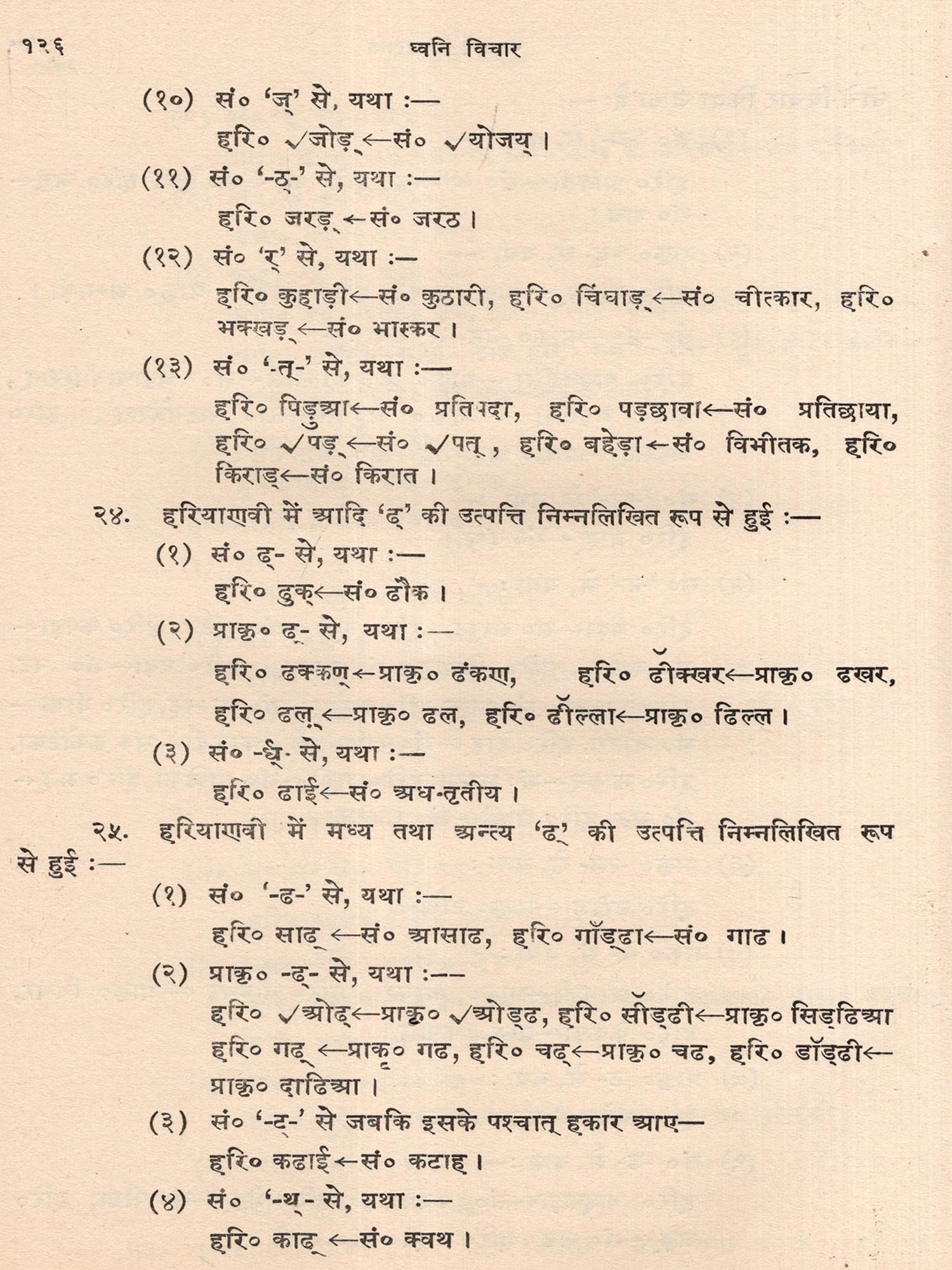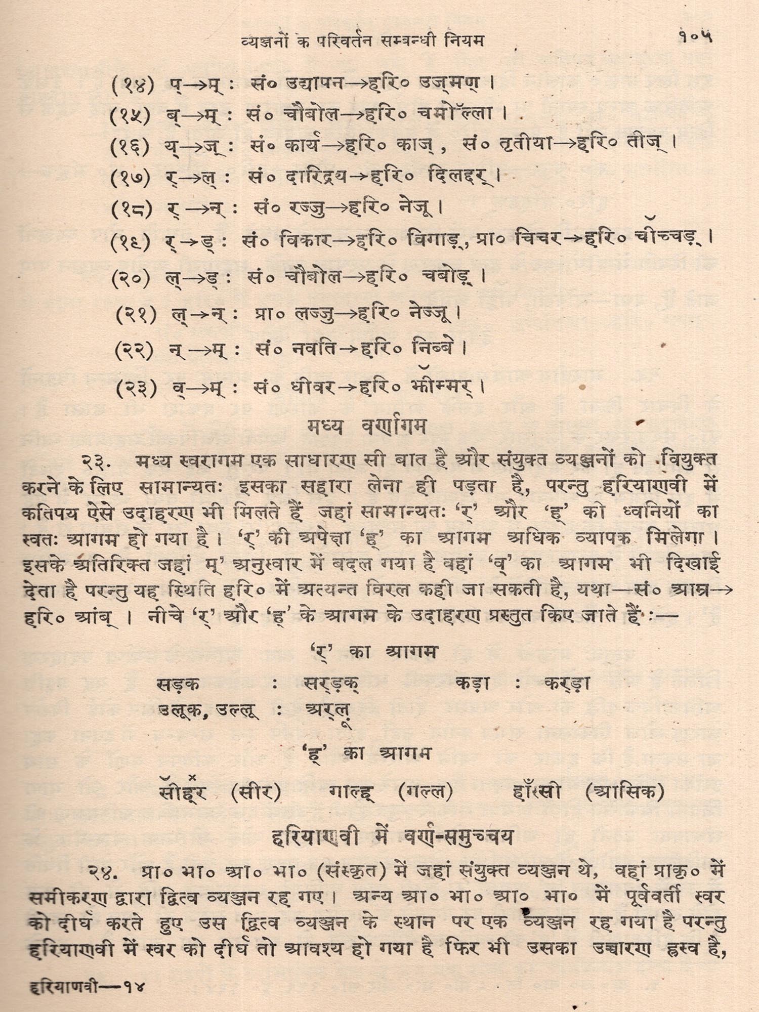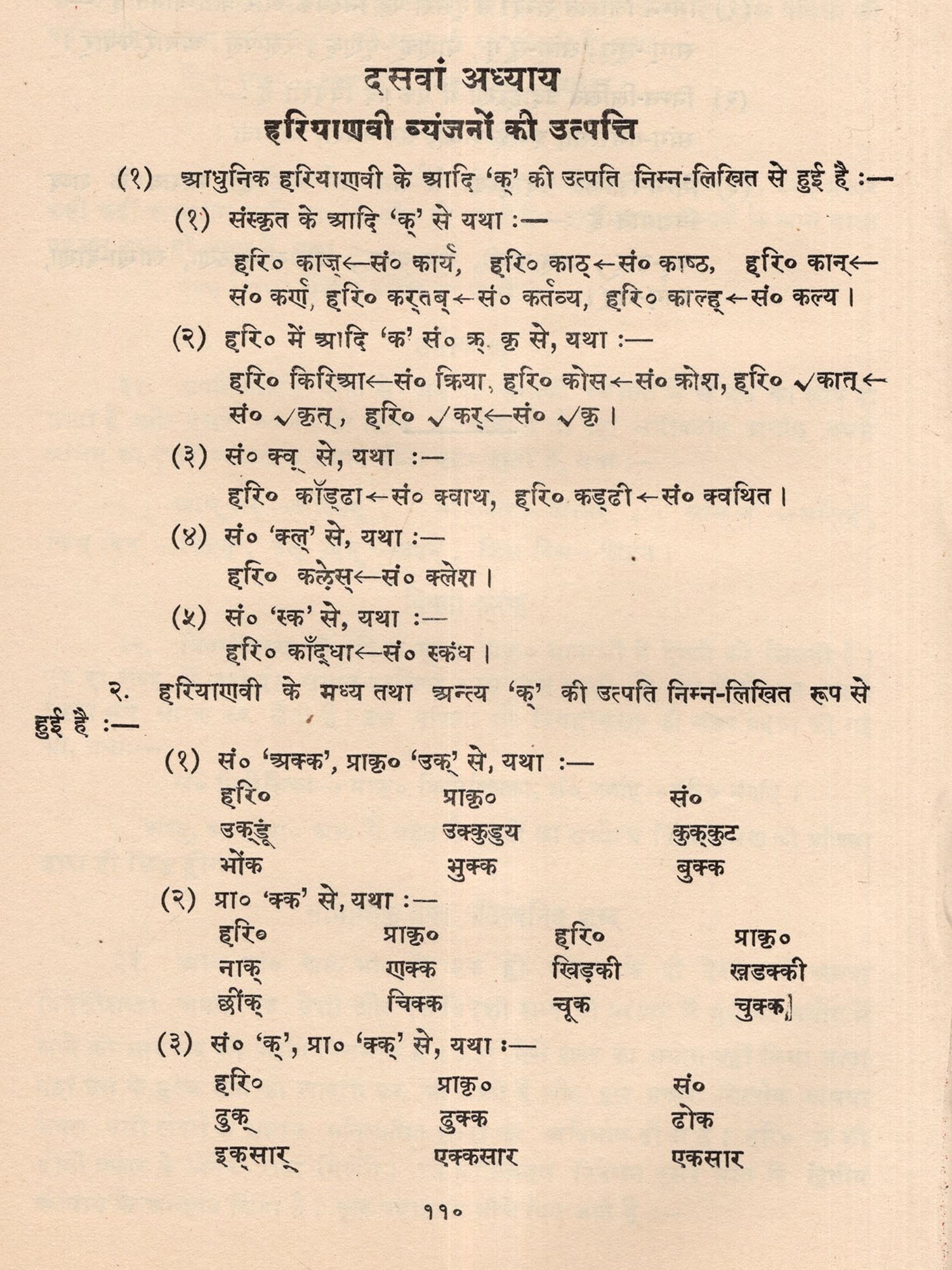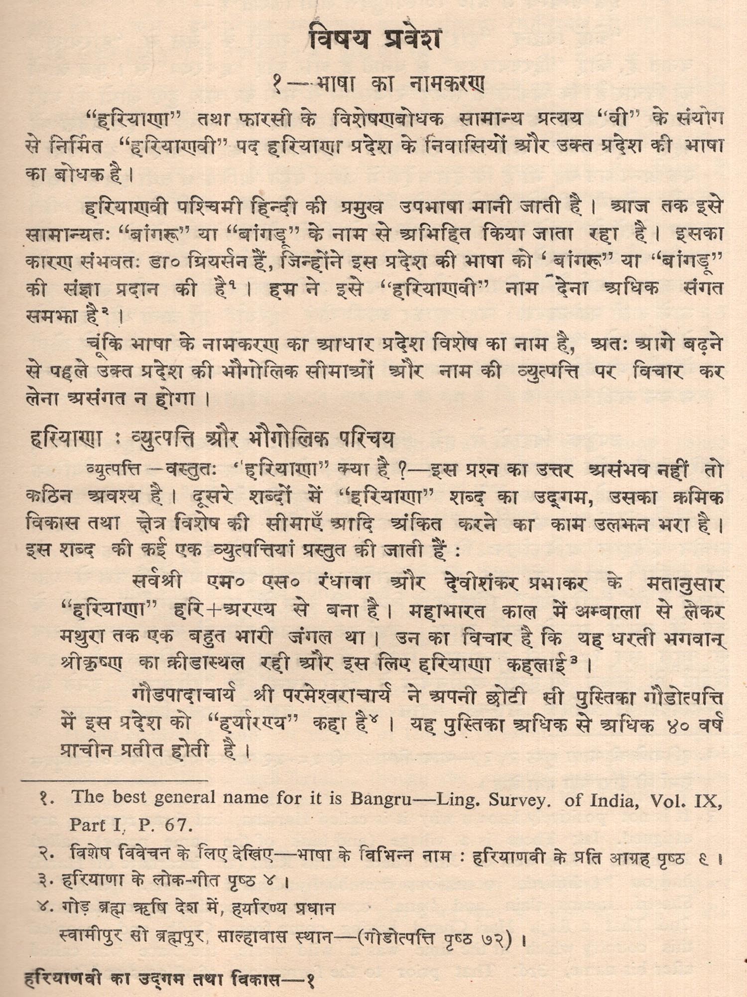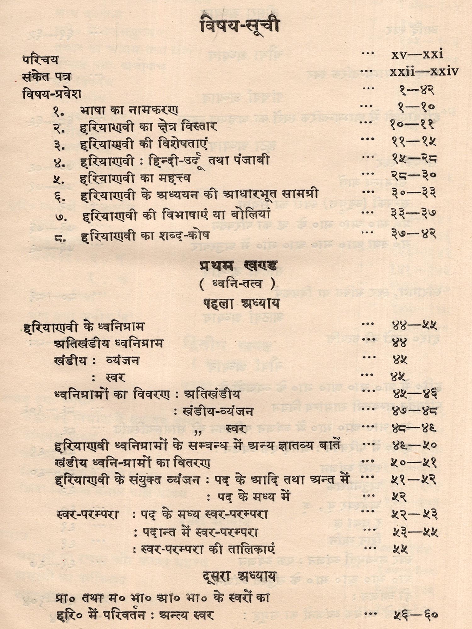पहले इस बात का कि इसके अन्तर्गत हरियाणा प्रदेश में प्रचलित सभी रूपों का समावेश हो सके जैसे 'कहां' के लिए इस इलाके में' कित्', 'कड़े', 'कठे', 'कींधे', 'कॉहूँ', 'को' आदि रूप प्रचलित हैं। इस दृष्टि से स्थान-स्थान पर घूम कर हमने विभिन्न प्रचलित रूपों को एकत्रित करने का प्रयत्न किया है और उन्हें अपनी पुस्तक में शामिल कर लिया है।