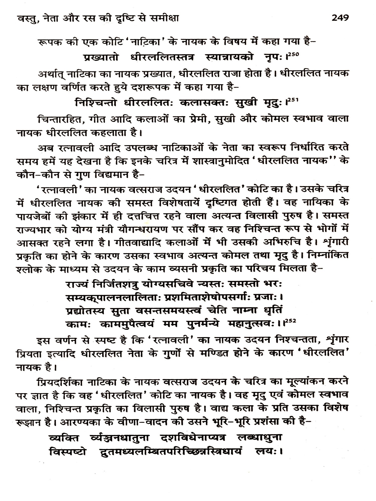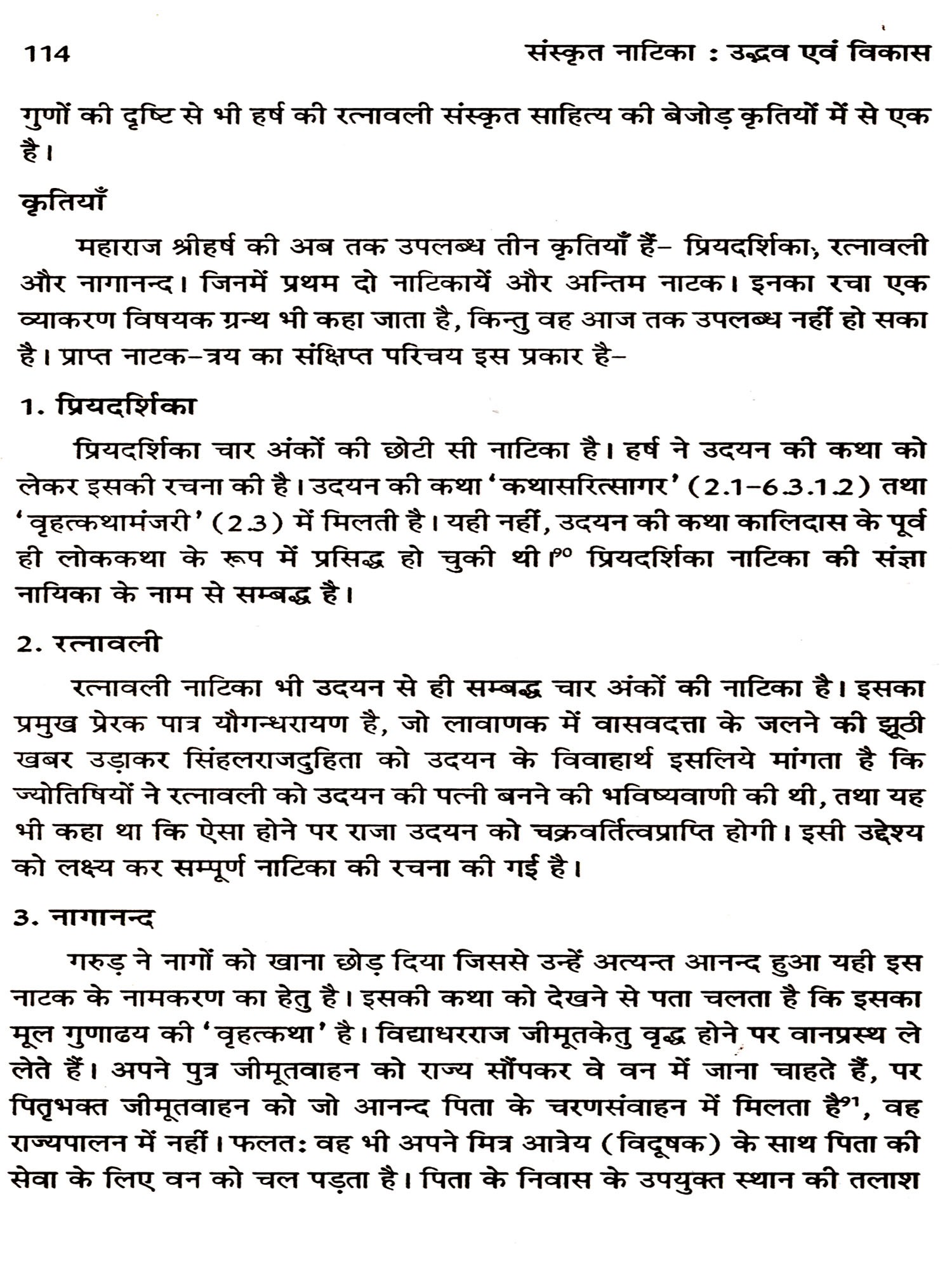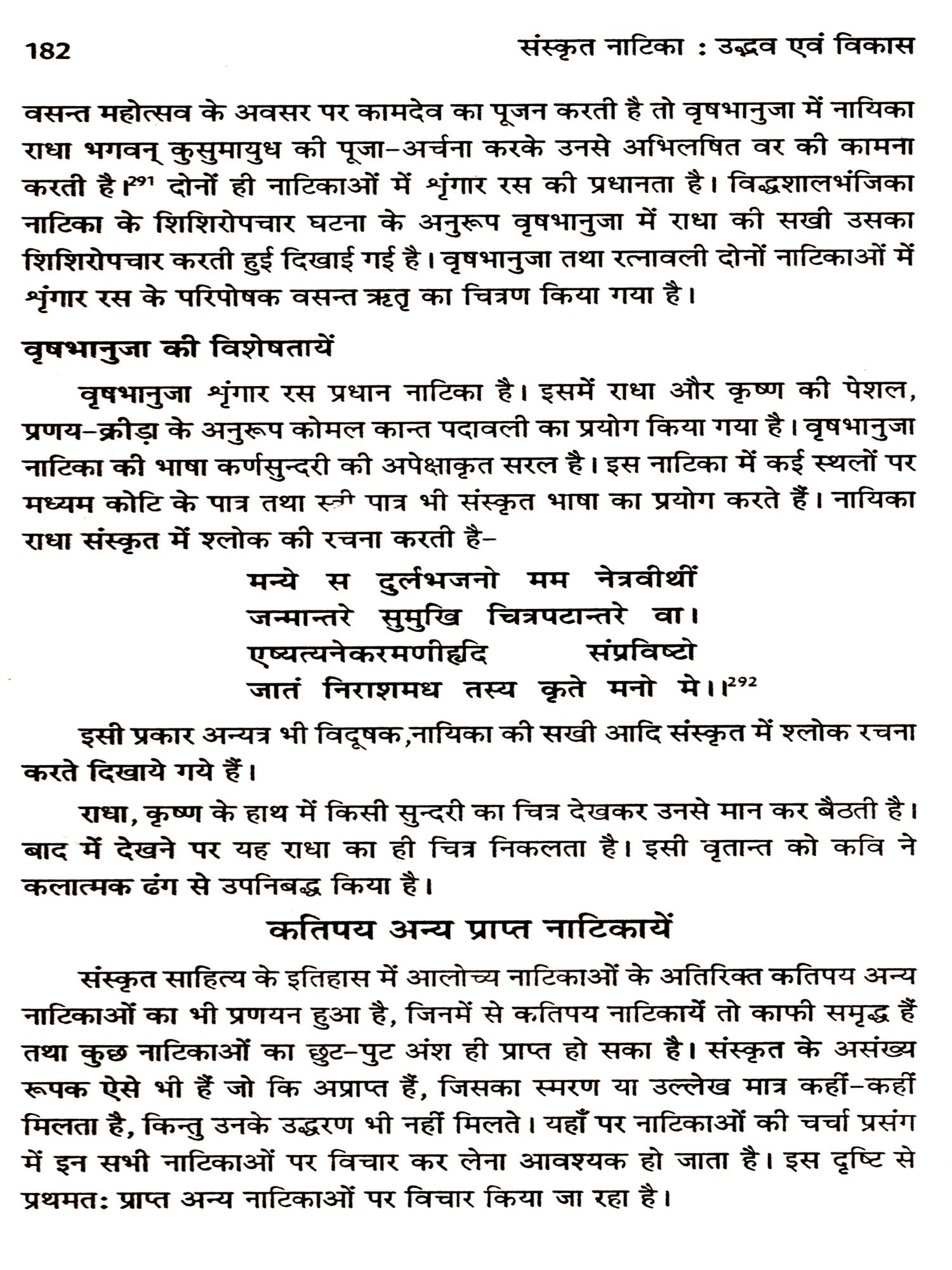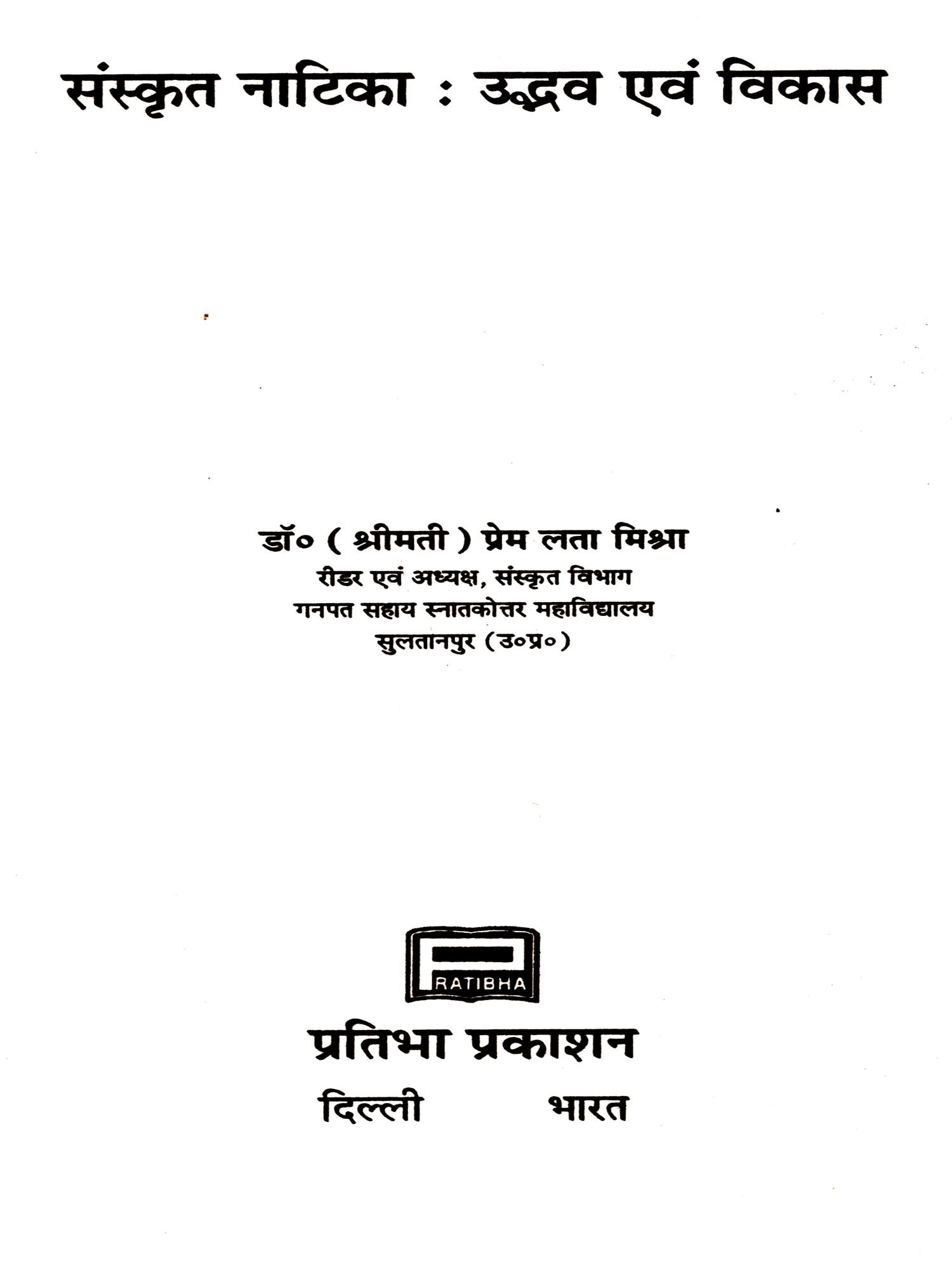 प्रस्तुत ग्रन्थ 'संस्कृत नाटिका उद्भव एवं विकास' में रत्नावली, प्रियदर्शिका, विद्धशालभंजिका, कर्णसुन्दरी, चन्द्रकला तथा वृषभानुजा नाटिका का नाट्यशास्त्रीय अध्ययन किया गया है।
