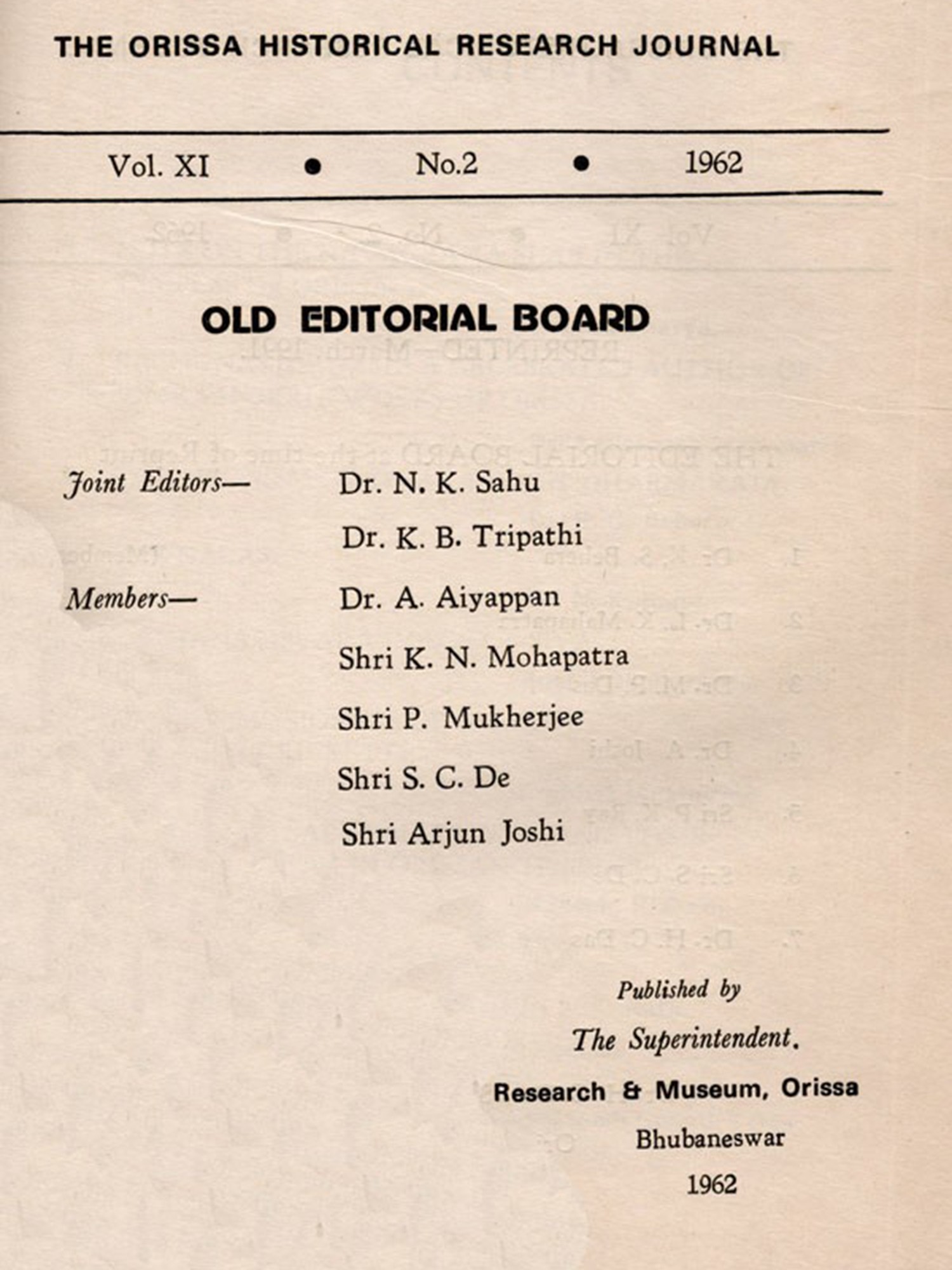 The Orissa Historical Research Journal: Vol. I April 1952 No.1 (Including Articles on Two Solar Legends Re-Examined and Netabhanja an Ancient King of Orissa)