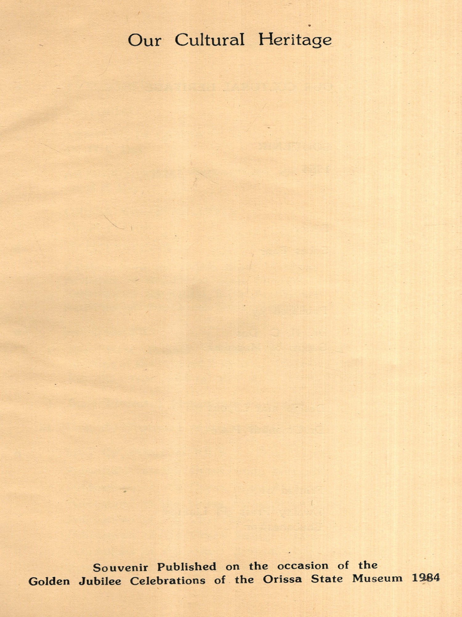 Souvenir Published on the Occasion of the Golden Jubilee Celebrations of the Orissa State Museum 1984