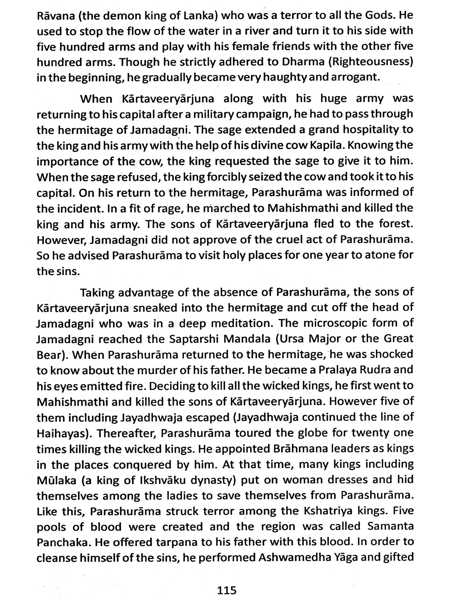 Merit of Rayar's book is bound to arouse enthusiasm in the minds of its readers and this enthusiasm will encourage them to learn more about these Puranic characters. For example, references to slaying of Hiranyakashipu and Vritrasura by Narasimha and Indira respectively will make the reader to read Mahabharatha in original to learn more about these stories. Similarly, Rayar's delineation of the four Ashramas, Vedangas and various religious ceremonies like Seemantopayana and Chuda Karma will drive young readers to seek more details about these from their elders who are qualified to describe further. It is this characteristic ie making its readers to go in search of more details, which makes "Our Puranic Characters" one of the outstanding contributions to Hindu religion.