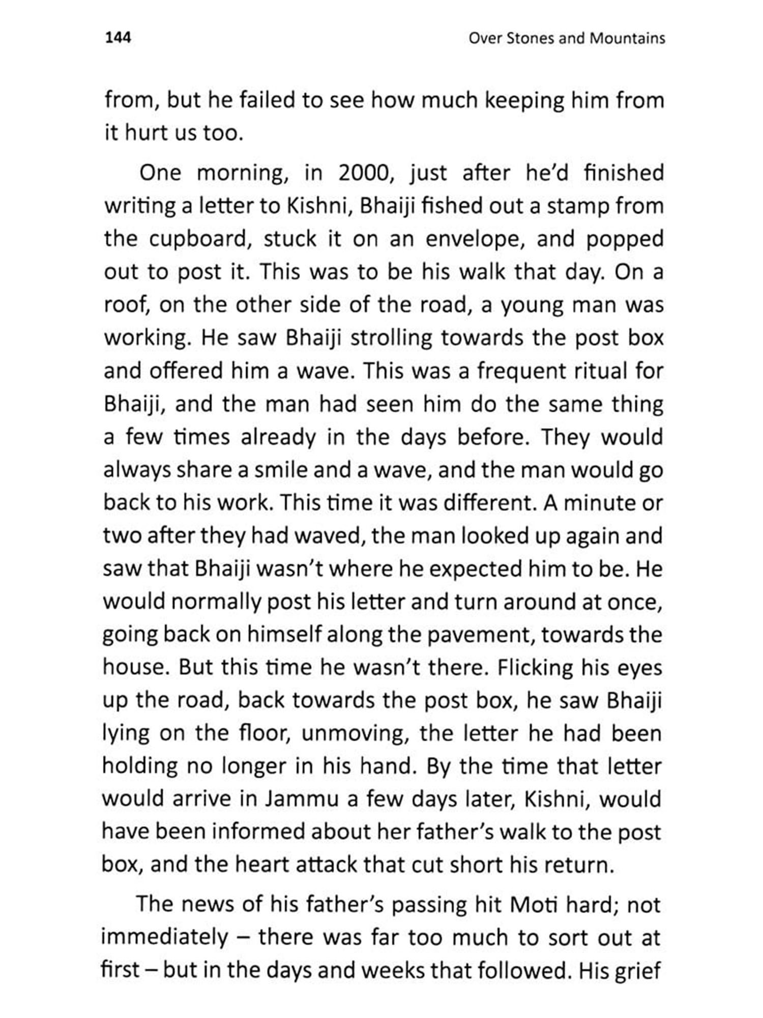 In this touching memoir the author captures the stones and mountains of her life. There are the high peaks surrounding her birth place of Kashmir, the country side of her adulthood in West Yorkshire, and the long hikes she undertakes later in her life. Interwoven with these physical stones and mountains are metaphorical ones that she faces, ranging from the political upheaval in Kashmir to her husband's incurable progressive neurological disorder and his unjust ordeal at the hands of professional bodies. This book is about how love provides the strength to scale new heights along with one's soul mate, even after he has passed on.