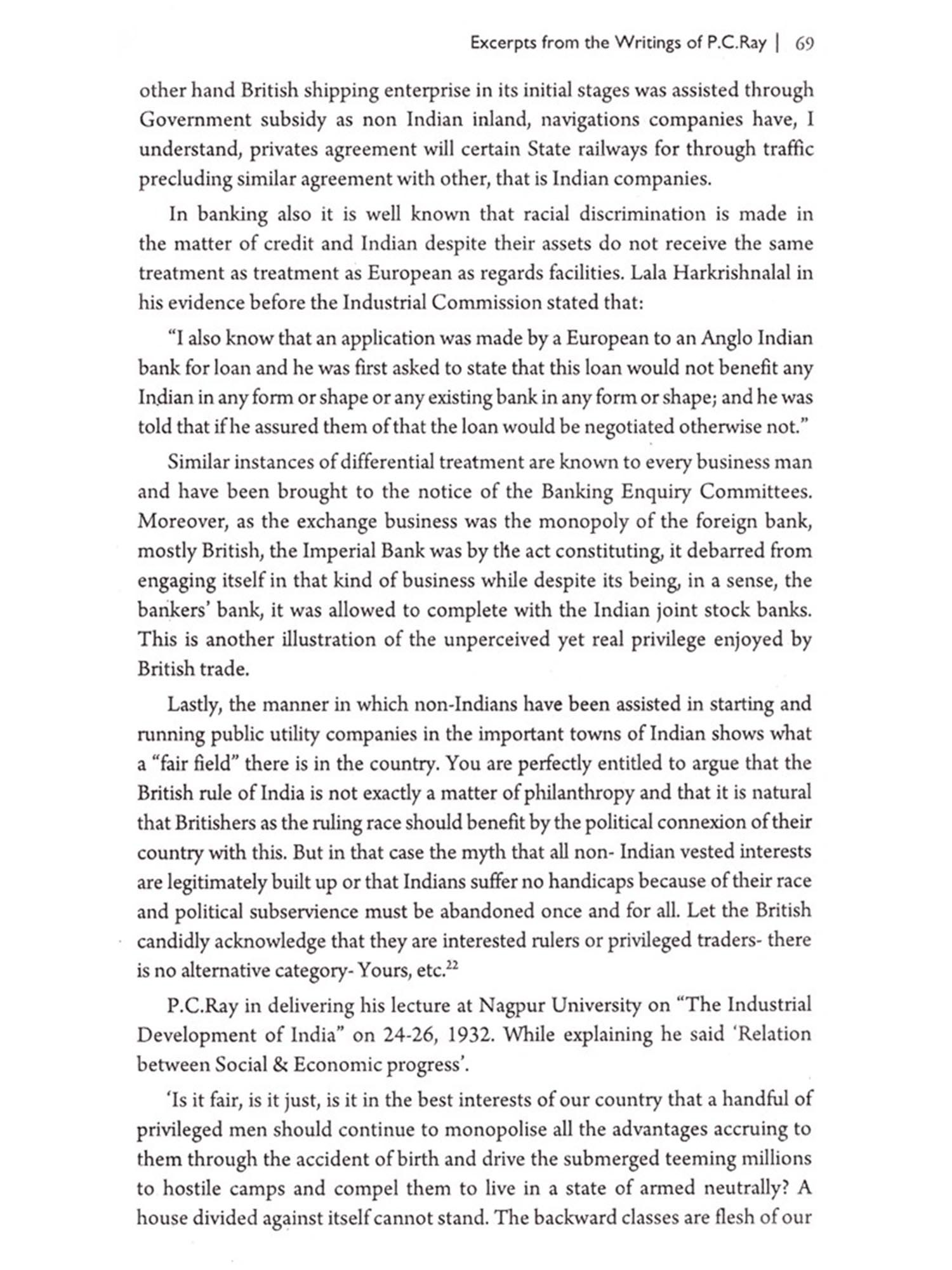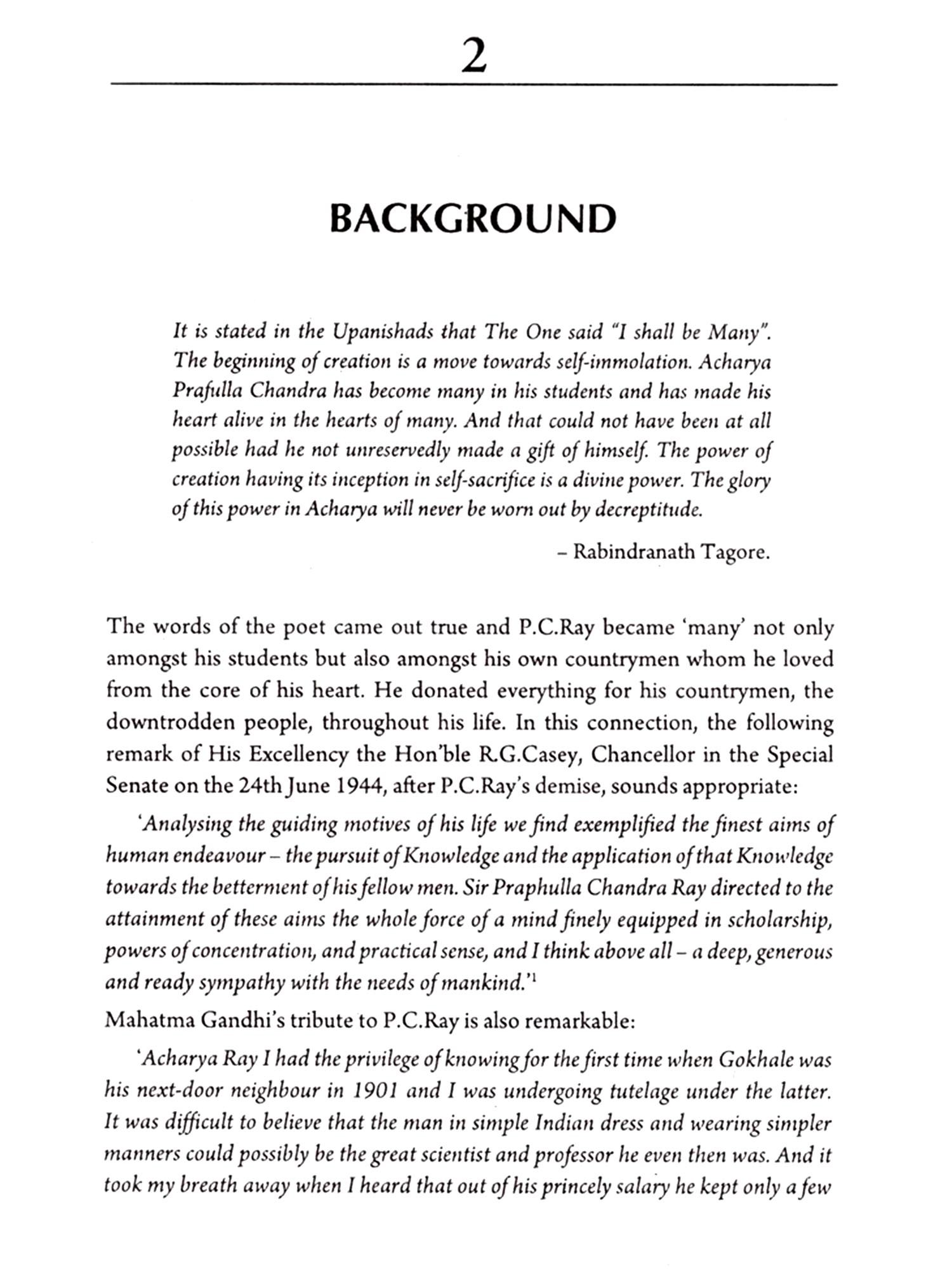 "The world knows Acharya Prafulla Chandra Ray as a great chemist but the fact that he could wield his brain as powerfully as he could handle a test tube would be a revelation... to readers and he tackled any advance situation so far freedom of our country from all types of bondages are concerned.