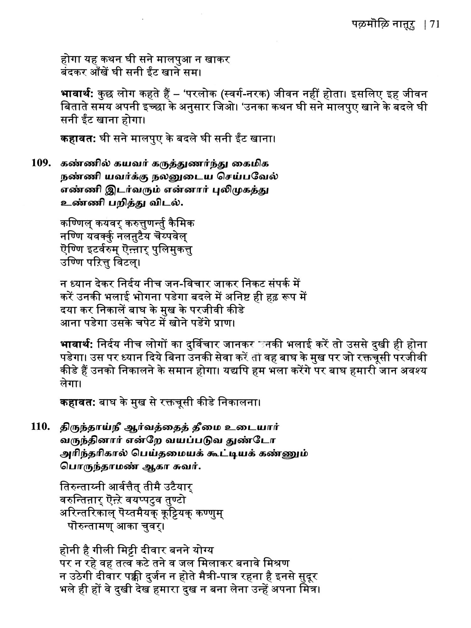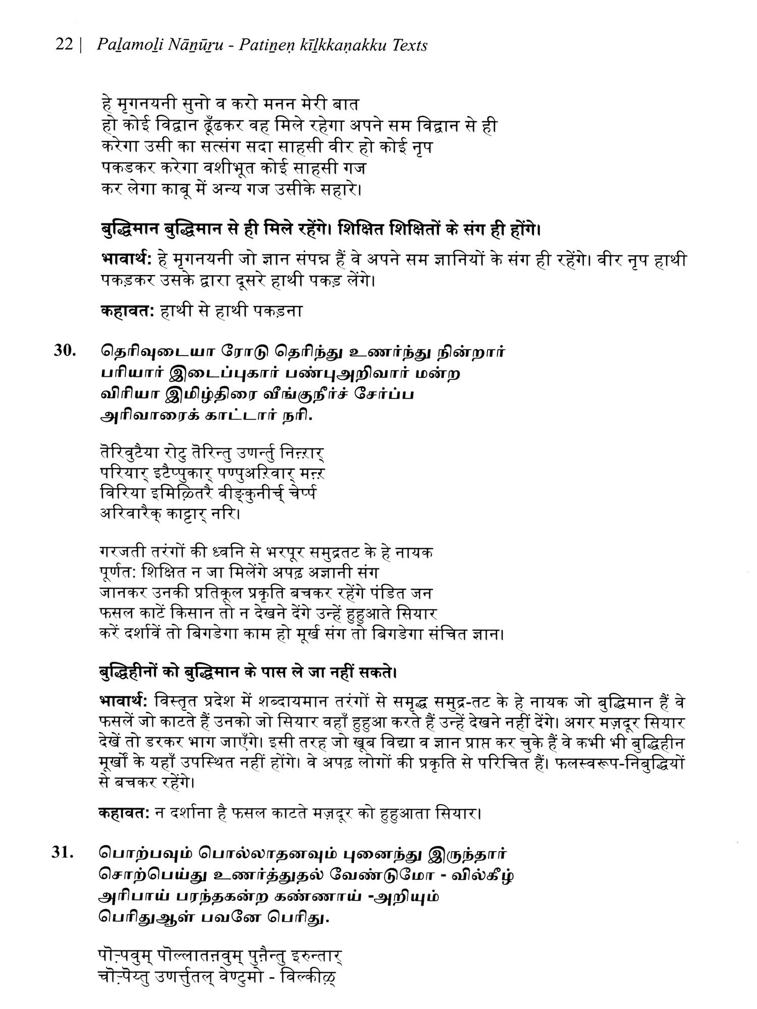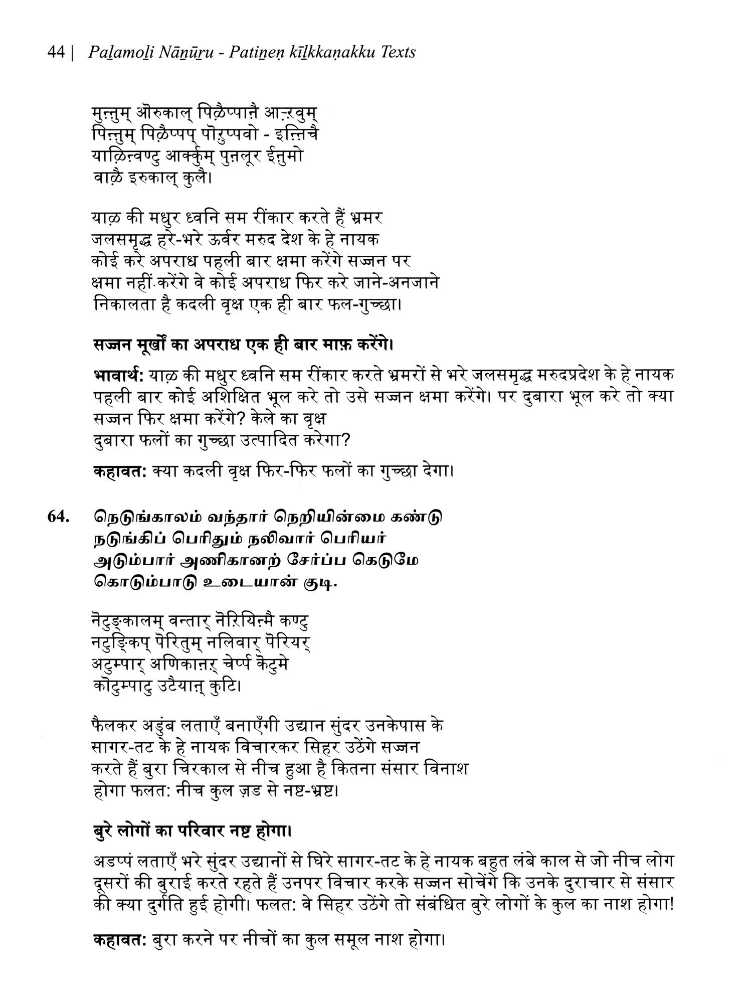 पऴमोऴि नाऩूऱु: कहावत चतुश्शती (பழமொழி நானூறு)- Palamoli Nanuru: Kahawat Chatushshati (Original Text, Devanagari Transliteration, and Verse Translation)