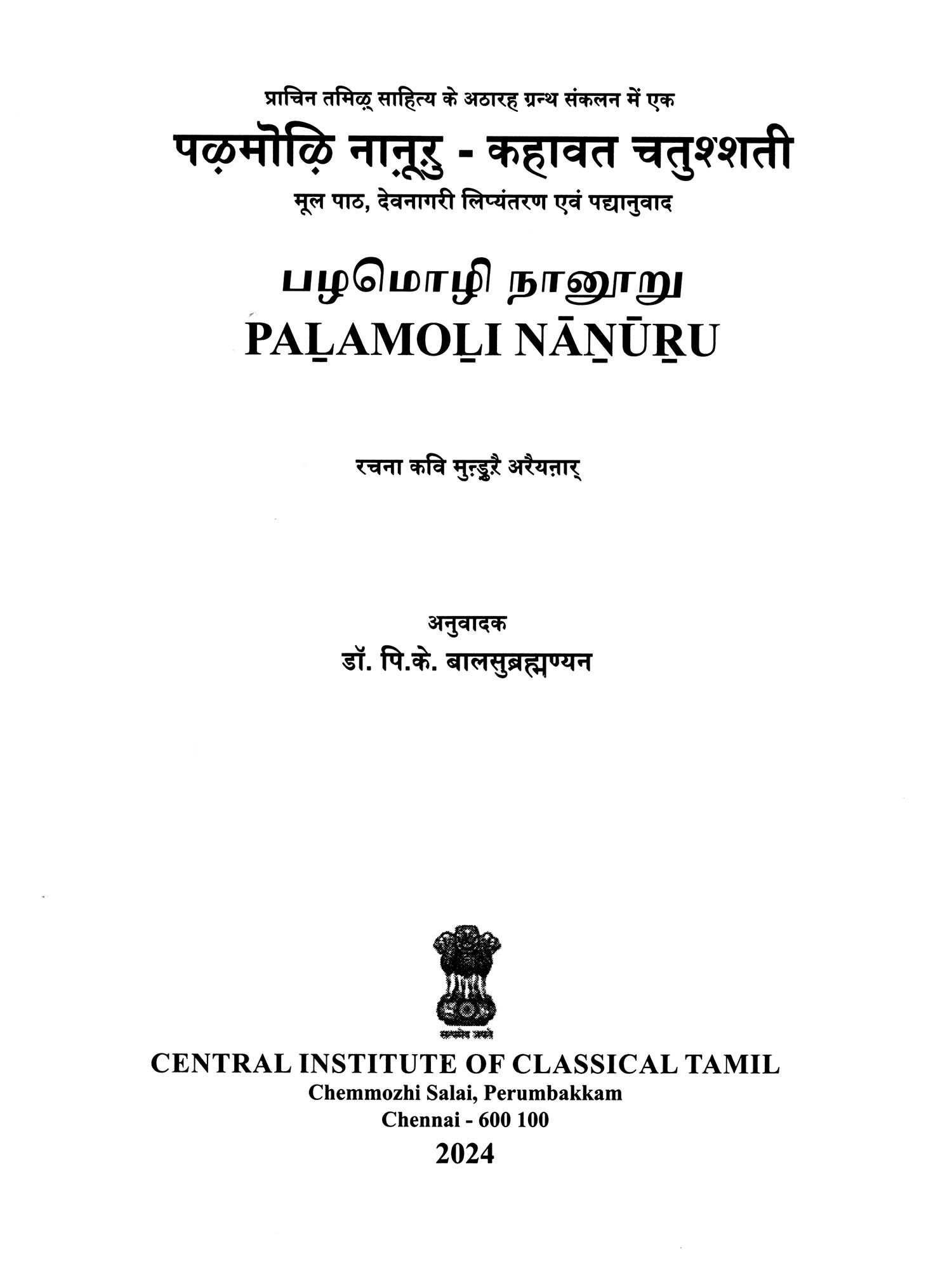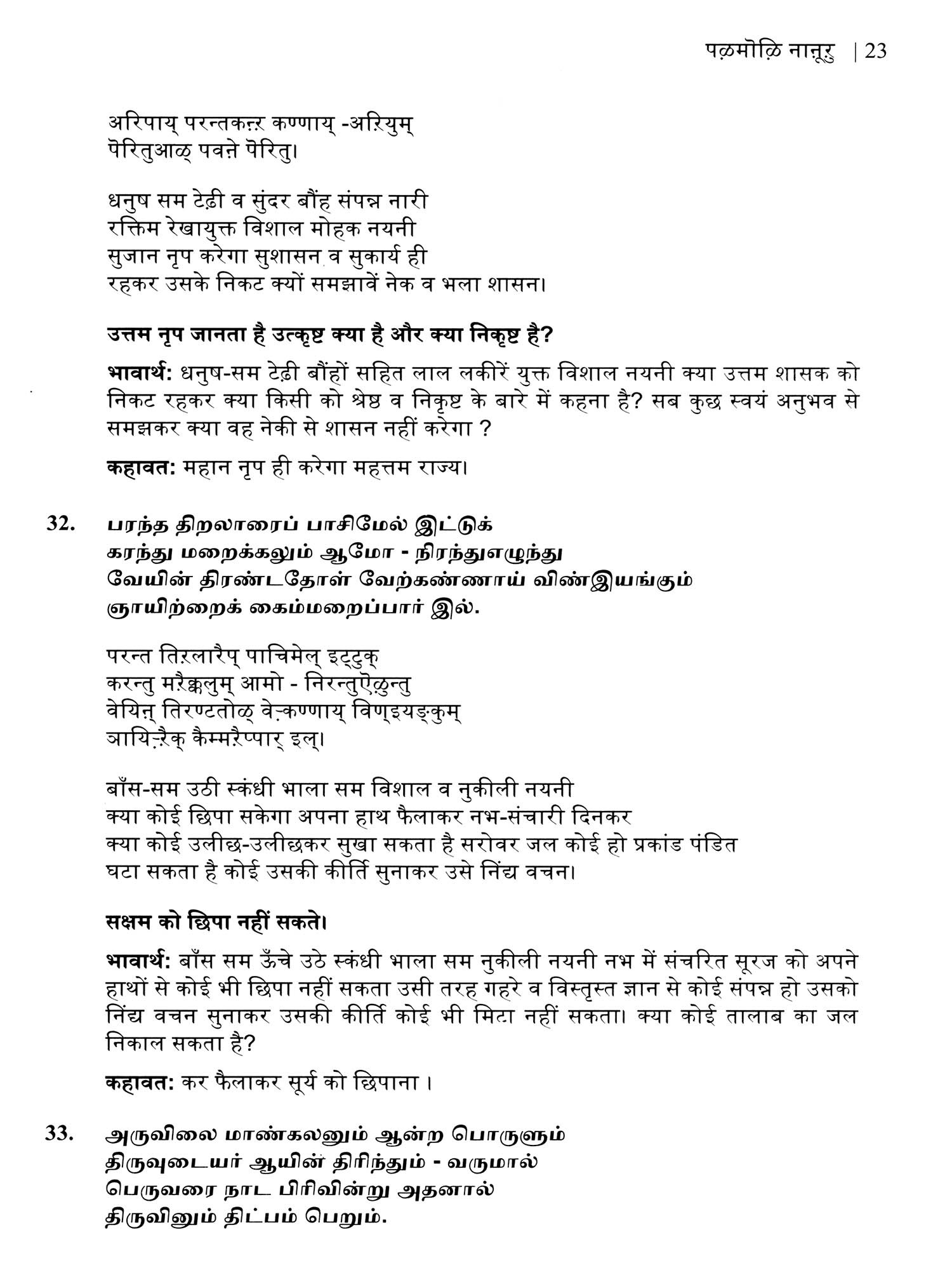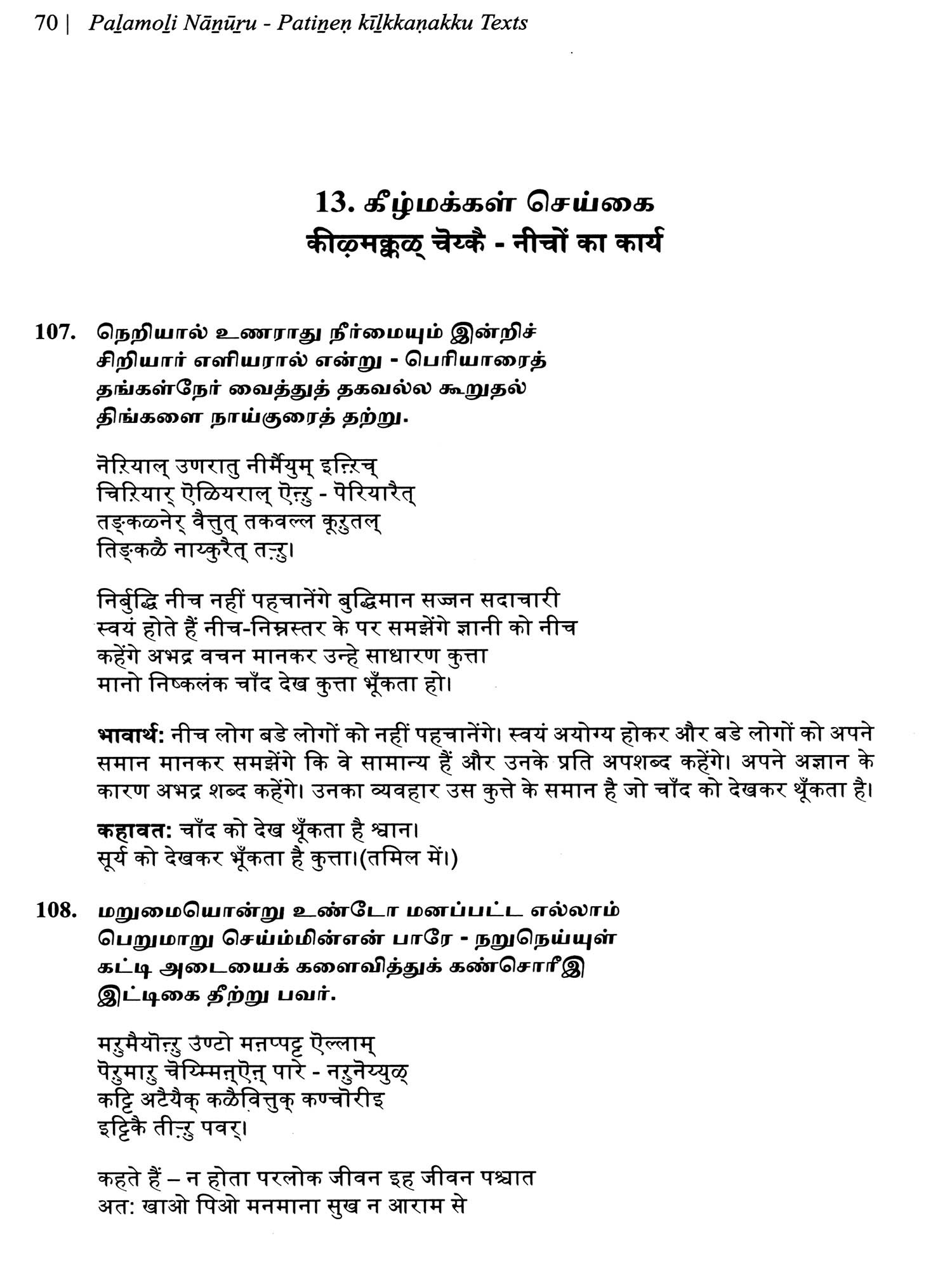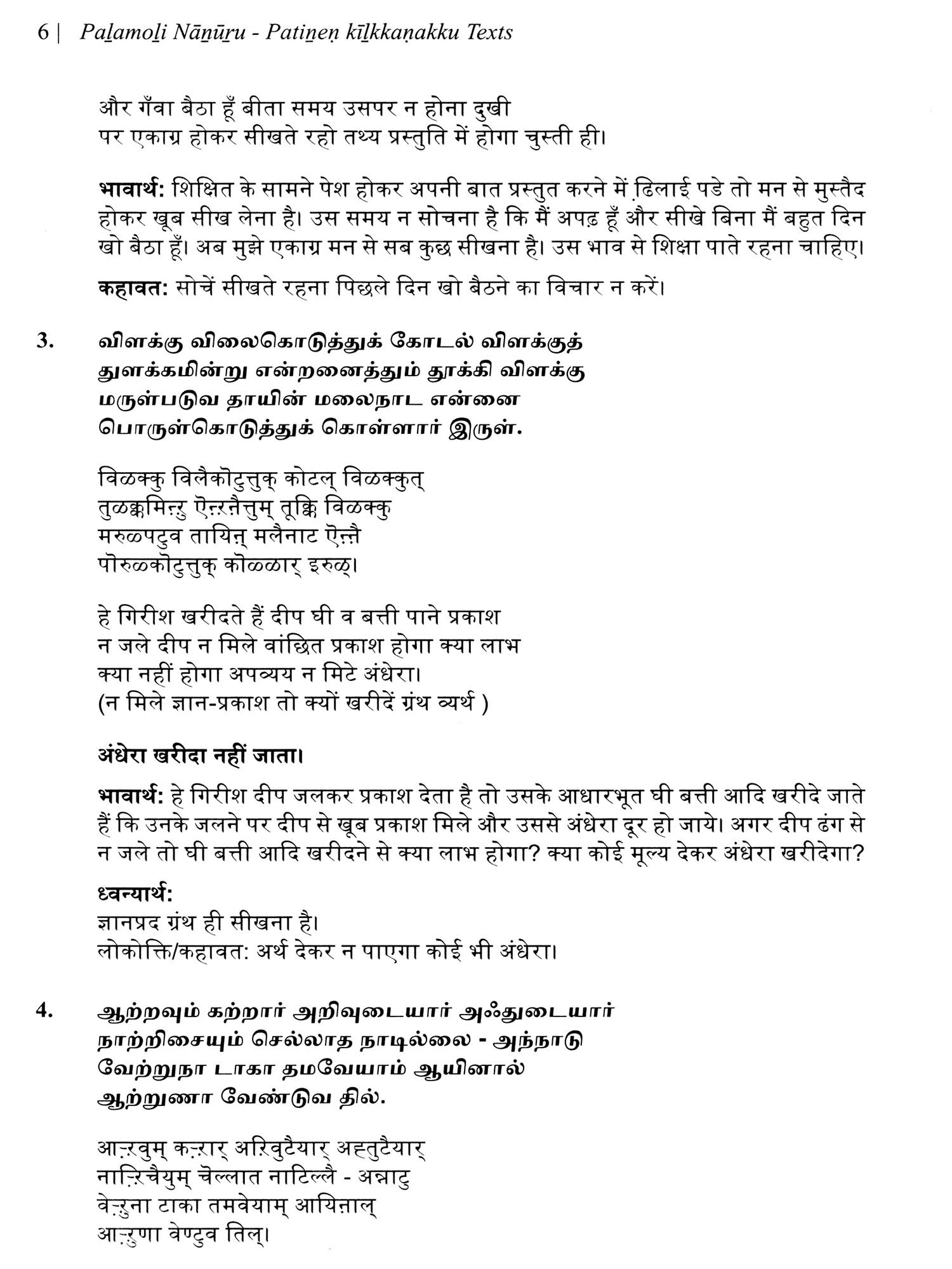 पऴमोऴि नाऩूऱु: कहावत चतुश्शती (பழமொழி நானூறு)- Palamoli Nanuru: Kahawat Chatushshati (Original Text, Devanagari Transliteration, and Verse Translation)