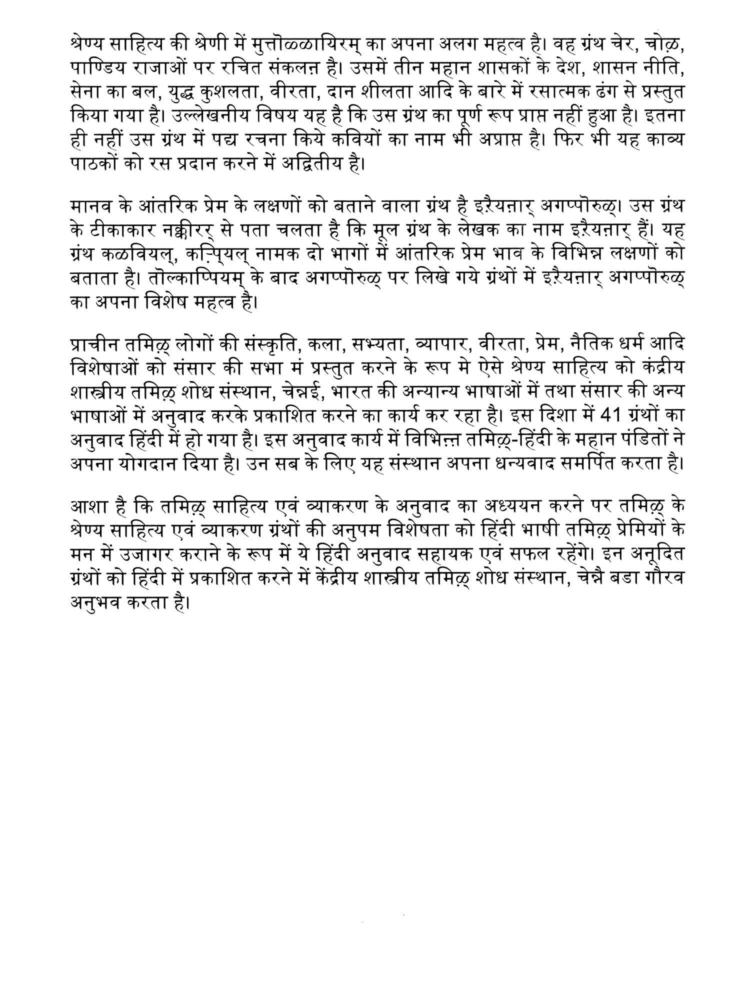 Language: Tamil Text with Devanagari Transliteration and Hindi Translation