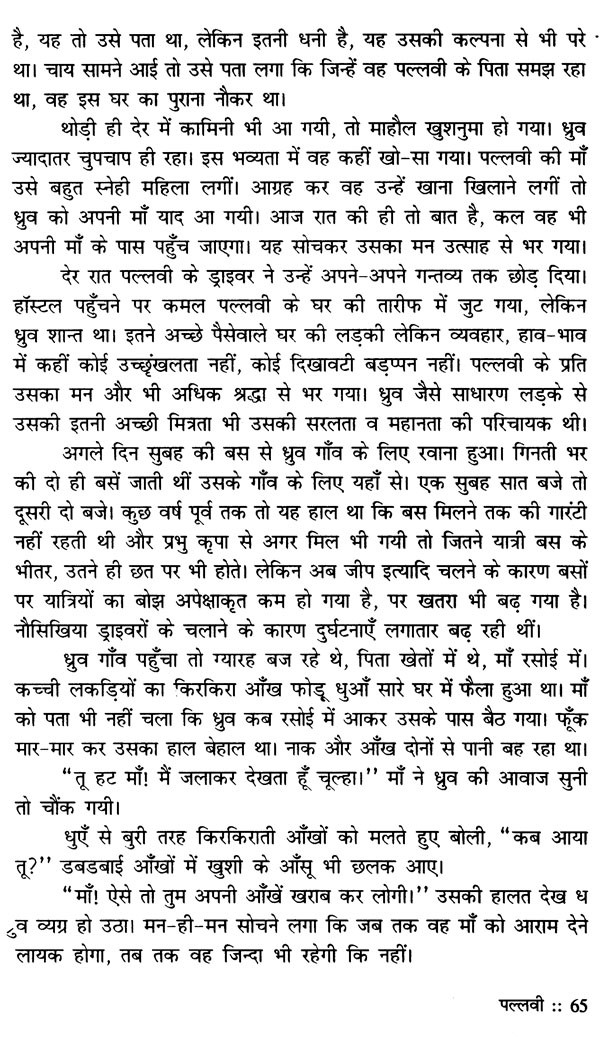 'पल्लवी' डॉ. रमेश पोखरियाल 'निशंक' का नया उपन्यास है। अपने पाठ में बहुवचनी इस उपन्यास में लेखक ने आद्योपान्त एक ऐसी मासूमियत का नजारा किया है, जिसका अभाव आज के तथाकथित बौद्धिक साहित्य में परिलक्षित होता है। यह विदित रहे कि तमाम प्रचलित (और बहुधा प्रशंसित) वजनी छद्‌मों से किनाराकशी करने मात्र से ही यह लेखकीय मासूमियत नहीं आती, 'पल्लवी' में हम उस साहस से भी बारहाँ दो-चार होते हैं जो सभासदों की कसीदाकारी के बीच अचानक शहंशाह की नंगई को उजागर कर देता है। लेखक इस उपन्यास में पन्ने-दर-पन्ने इस साहसिक मासूमियत को किसी औज़ार की तरह इस्तेमाल करता दिखता है। दरअसल आज के स्फीतिपरक; बड़बोले और चीख-चीखकर दर्ज किये गये मोटे-दबंग शब्दों से अँटे युग को ठीक-ठीक विवक्षित करने तथा निरन्तर छीजते जाते मानवीय मूल्यों को पुनः स्थापित करने का इससे कारगर उपाय कुछ हो भी नहीं सकता था। उपन्यास में ध्रुव और पल्लवी का प्लेटोनिक प्रेम, ध्रुव का धीरोदात्त चरित्र, तत्पश्चात् उन उच्च चारित्रिक मूल्यों का पल्लवी में सन्निवेश बहुत ही रोचक व विश्वसनीय दिख पड़ता है। लेखक ने इन चरित्रों का कंट्रास्ट रचने के लिए कुछ और भी चरित्र- बिन्दु, वकील साहब, बिन्दु की भाभियाँ, पल्लवी के पिता इत्यादि भी सृजित किये हैं, नतीजतन श्याम के परिपार्श्व में श्वेत की धवलता और भी निखरकर उद्भासित हुई है। संक्षेप में, एक नितान्त नये आस्वाद का उपन्यास। सर्वथा स्वागतयोग्य ।