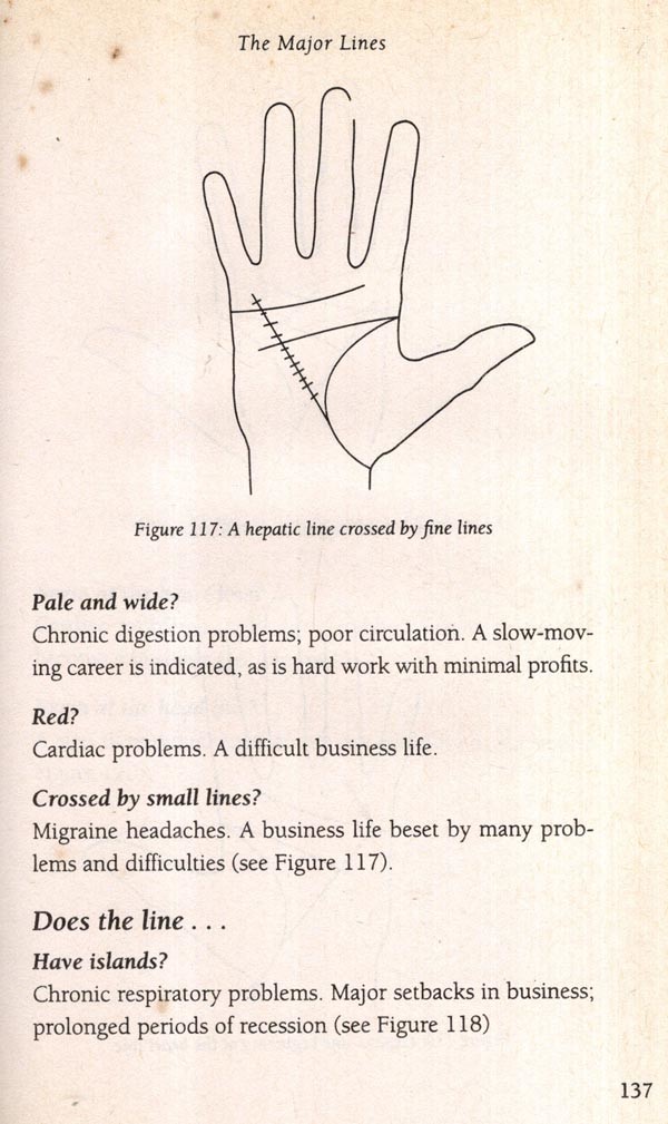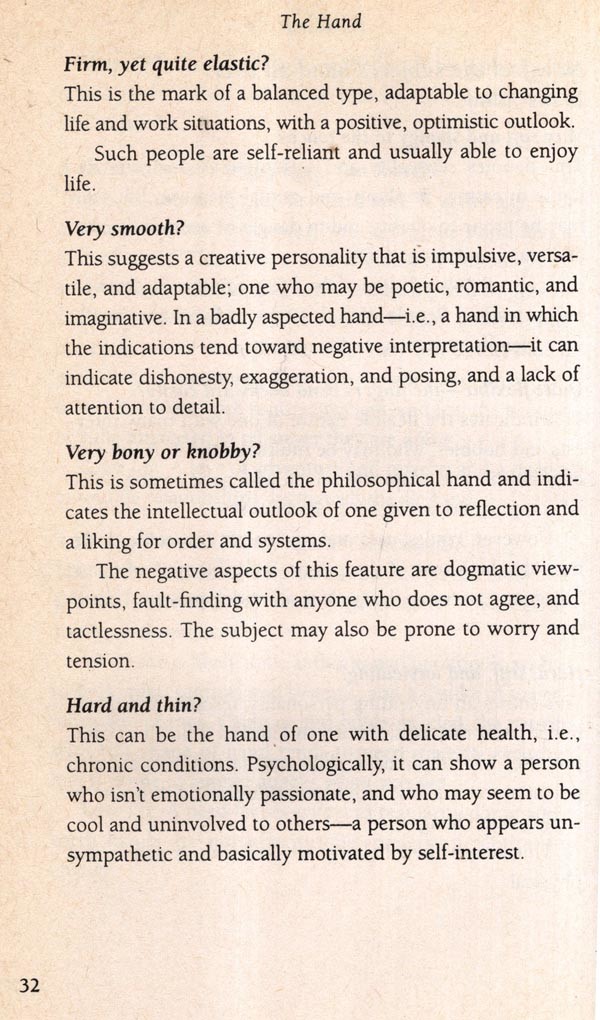My own knowledge was acquired slowly. Having no teacher, I relied on books, beginning with Katherine St. Hill and Cheiro, both famous palmists around the turn of the century. These writers were very keen on gloomy, moralistic interpretations. They had a good grasp of the traditional stream of palmistry, but this was colored by the particular social mores and crude psychological knowledge of their day. It takes a keen student to wade through all the Victorian prose and the jumbled, poorly organized mass of detail.