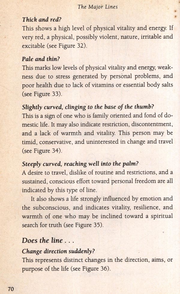The palm is crisscrossed with lines: three major lines-the life, head, and heart lines-plus a variety of minor lines that appear on the hands of all normal people. However, variations in length, thickness, color, and regularity are infinite. Each of us has a unique hand, different to anybody else's. This is due to the fact that the lines are caused by the differences and experiences that make us individual.