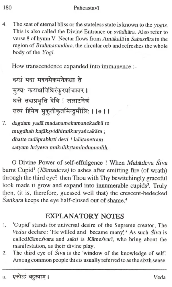 It is said that during his glorious visit to Kashmir Adi Sankara was impressed with these hymns recited by a kashmiri Pandit. Basically a monistic treatise Pancastavi deals with secrets of kundalini power according to sakta tradition, which corresponds, to krama system of Kashmir Saivism. This commentary is an attempt to bring out inner meanings of these deceptively simple poems on Kundalini Yoga.