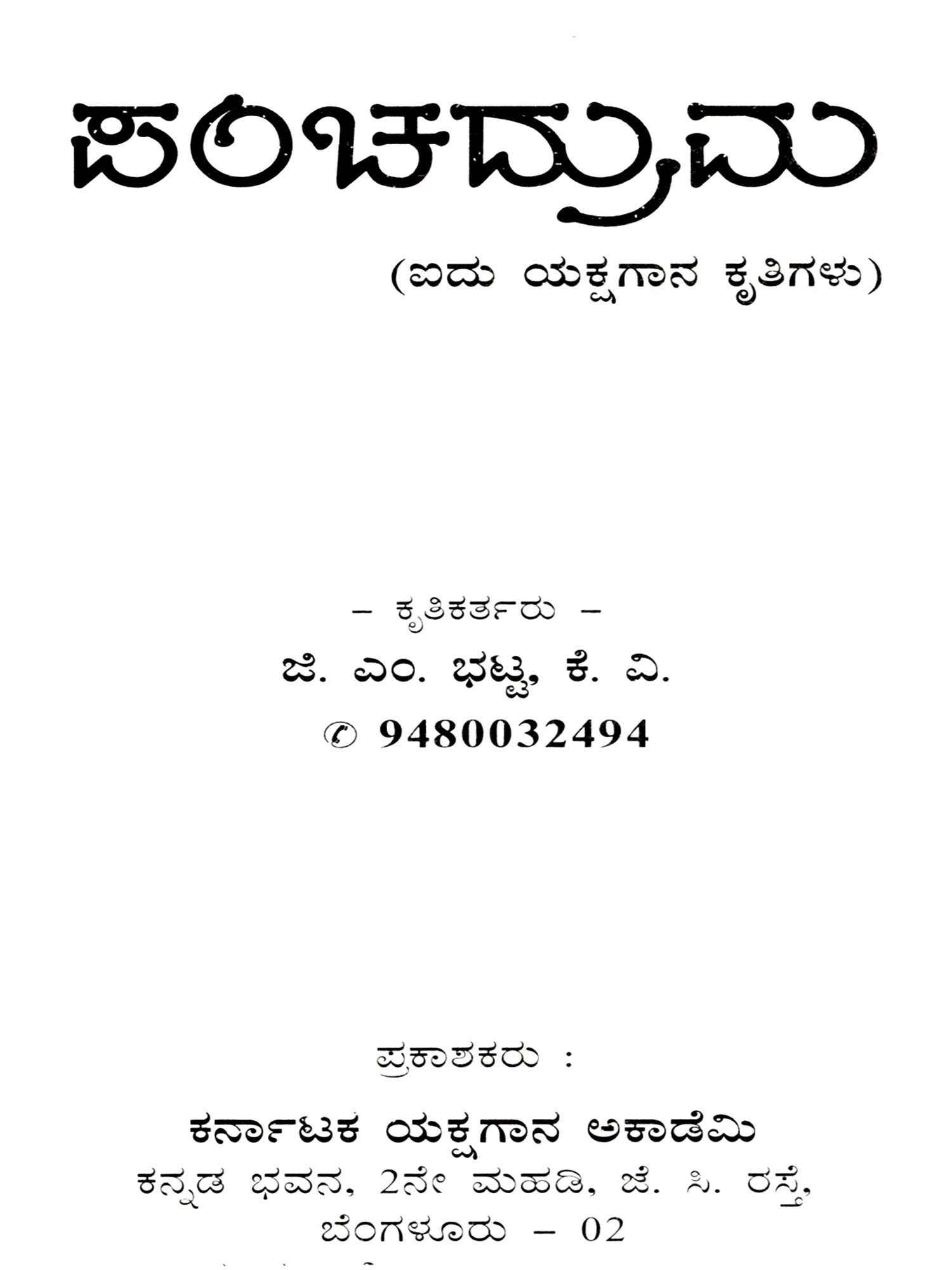 ಯಕ್ಷಗಾನ ಪಂಚರಾತ್ರ: Yakshagana Pancharatra- Bhasana Pacharathra Natakada Yakshagana Roopa (Kannada)