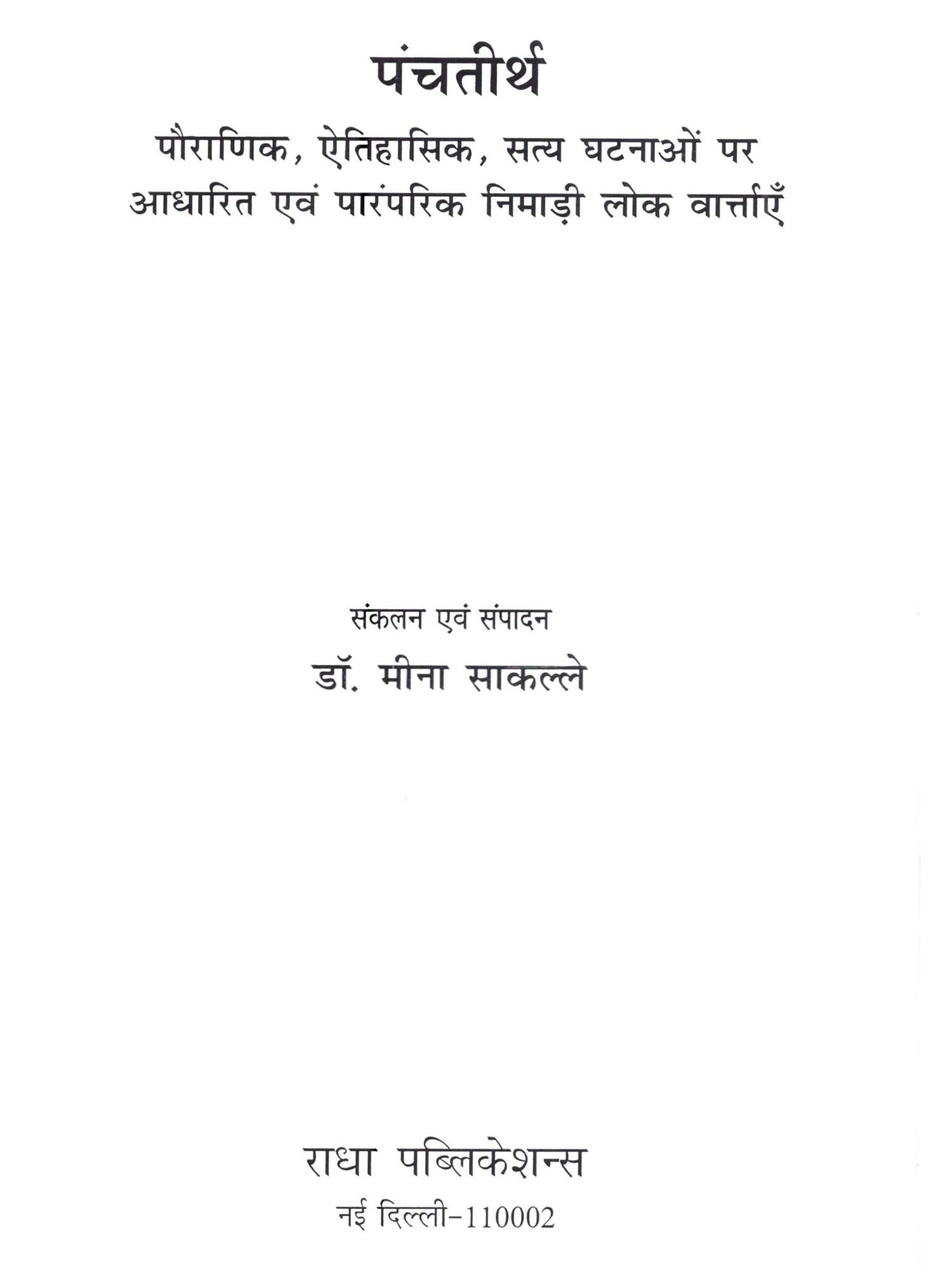 पंचतीर्थ (पौराणिक, ऐतिहासिक, सत्य घटनाओं पर आधारित एवं पारंपरिक निमाड़ी लोक वार्त्ताएँ): Panchteerth (Pauranik, Aitihasik, Satya Ghatnaon Par Aadharit Evam Paramparik Nimadi Lok Varttaen)