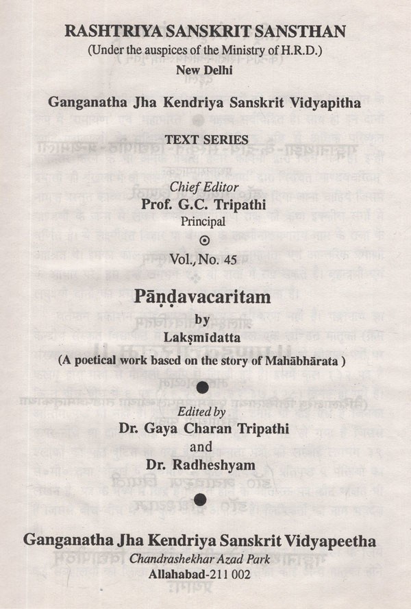 पाण्डवचरितम्- Pandava Caritam by Laksmidatta- A Poetical Work Based on The Story of Mahabharata (An Old and Rare Book)
