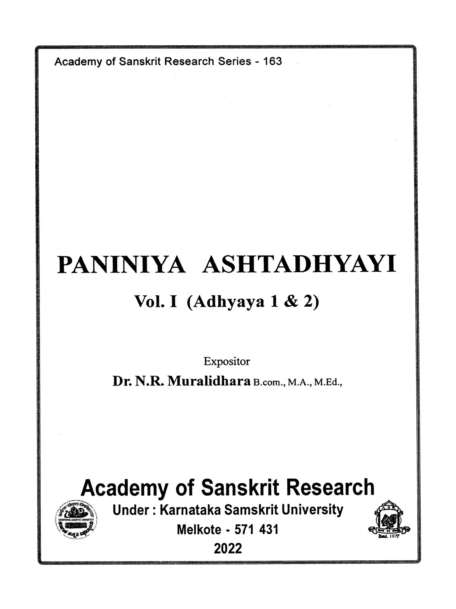 Studies in the Astadhyayi of Panini: Proceedings of the International Seminar Held in July 1981 (An Old and Rare Book)