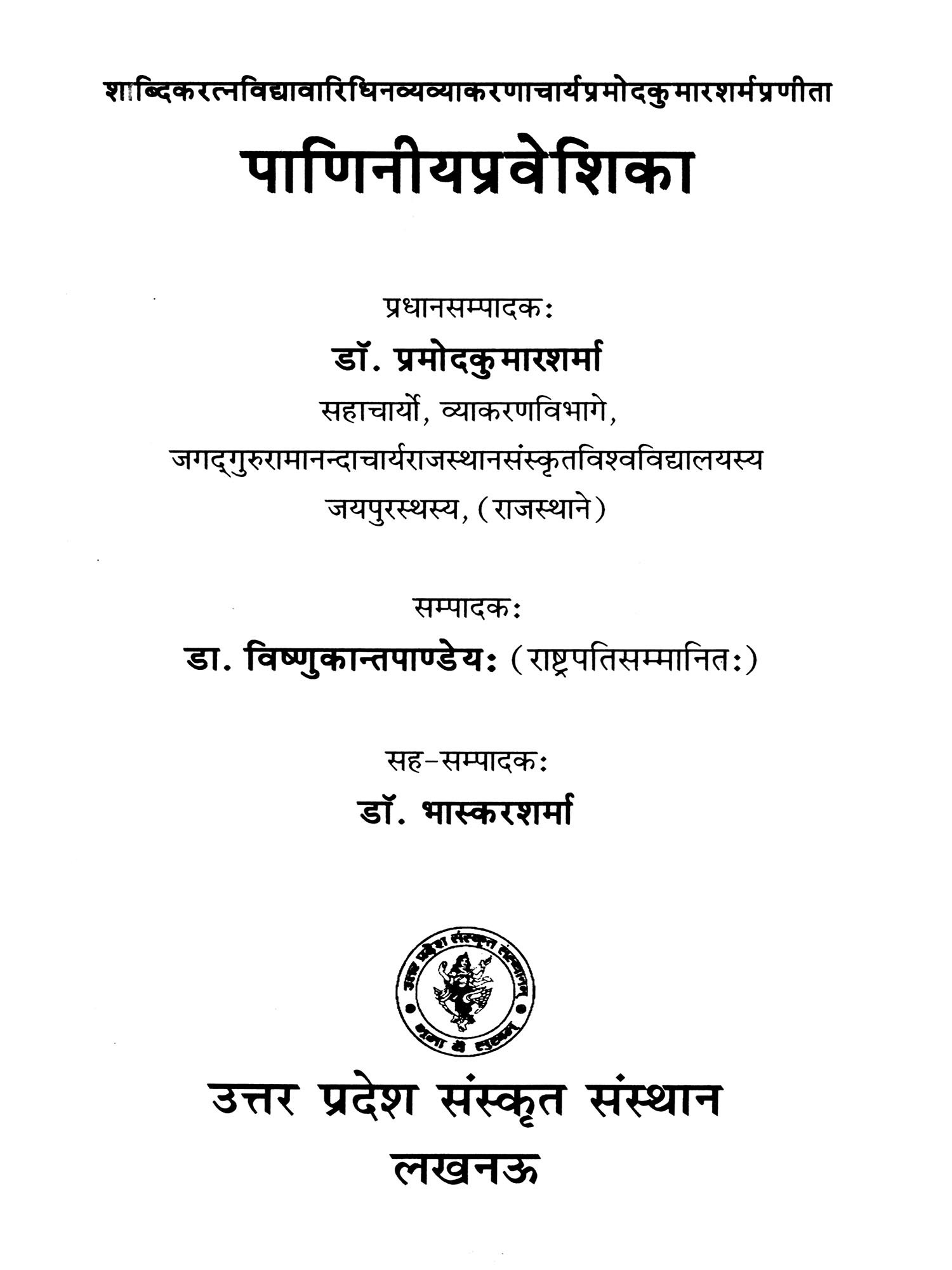 अन्वेषण, संरक्षण एवं प्रकाशन की श्रृंखला में प्रस्तुत अभिनव तथा बहुमूल्य ग्रन्थ 'पाणिनीयप्रवेशिका' का प्रकाशन किया जा रहा है। जैसा कि आप सभी पाठक महानुभावों को यह विदित है कि उत्तर प्रदेश संस्कृत संस्थान संस्कृत भाषा के संरक्षण संवर्द्धन एवं प्रचार-प्रसार के लिये प्रतिबद्ध है। व्याकरणशास्त्र के प्रख्यात मनीषी डॉ. प्रमोद कुमार शर्मा अपने छात्रावस्था में विश्वनाथ की नगरी में रहकर पाणिनीयव्याकरण का अद्वितीय वैदुष्य प्राप्त कर वर्तमान समय में अपराकाशी के नाम से प्रसिद्ध राजस्थान की राजधानी जयपुर नगर में स्थित जगद्गुरुरामानन्दचार्य राजस्थान संस्कृत विश्वविद्यालय के व्याकरण विभाग के उपाचार्य पद पर काय कर रहे हैं। इन्होंने ही इस महनीय ग्रन्थ का प्रणयन किया है। इन्हीं के प्रधानसम्पाकत्व में डॉ. विष्णुकान्त पाण्डेय एवं डॉ. भास्कर शर्मा द्वारा इस ग्रन्थ का सम्पादन किया गया है। अतः ग्रन्थ के लेखक के साथ-साथ सम्पादकद्वय भी अत्यन्त धन्यवादार्ह हैं। इस ग्रन्थ की प्राप्ति के पश्चात् इसके प्रकाशन प्रक्रिया में इस संस्थान के माननीय अध्यक्ष महोदय की सहर्ष अनुमति मिलने पर हम आज इस ग्रन्थ को आप सभी के समक्ष प्रकाशन कर प्रस्तुत कर रहे हैं। मुझे यह निश्चित विश्वास है कि अवश्य ही यह ग्रन्थ संस्कृत व्याकरण के विद्वानों व अध्येताओं के लिए अतीव उपयोगी सिद्ध होगा।