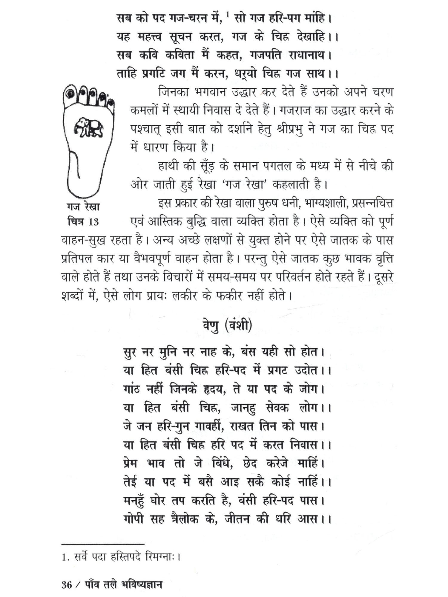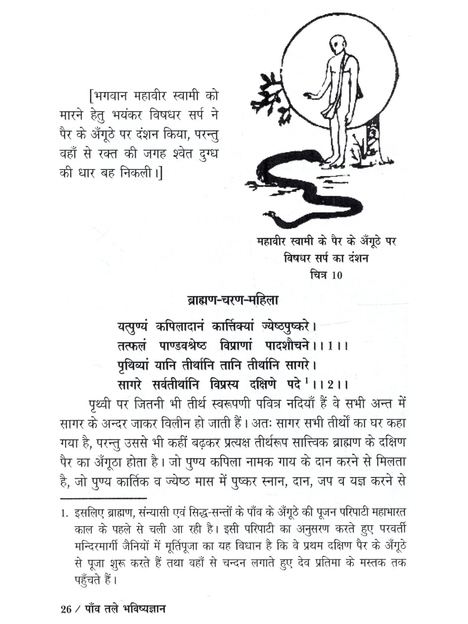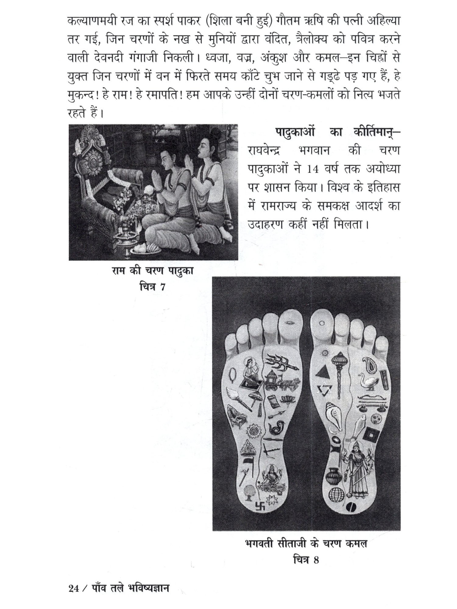 पाँव तले भविष्य ज्ञान जहाँ ज्योतिष साहित्य में विद्वानों ने एक-एक शाखा पर, एक-एक विधा पर अनेक ग्रंथ लिखे, वहाँ पाद रेखायें, पैरों के तले ही कुचली की कुचली रह गई। शास्त्रीय धरातल पर आधारित, आधुनिक वैज्ञानिक सर्वेक्षण के साथ... पाँव के सांगोपांग अध्ययन पर, लिखी गई विश्व इतिहास की पहली पुस्तक, अनेक आकर्षण ब्लाकों व चित्रों के साथ।