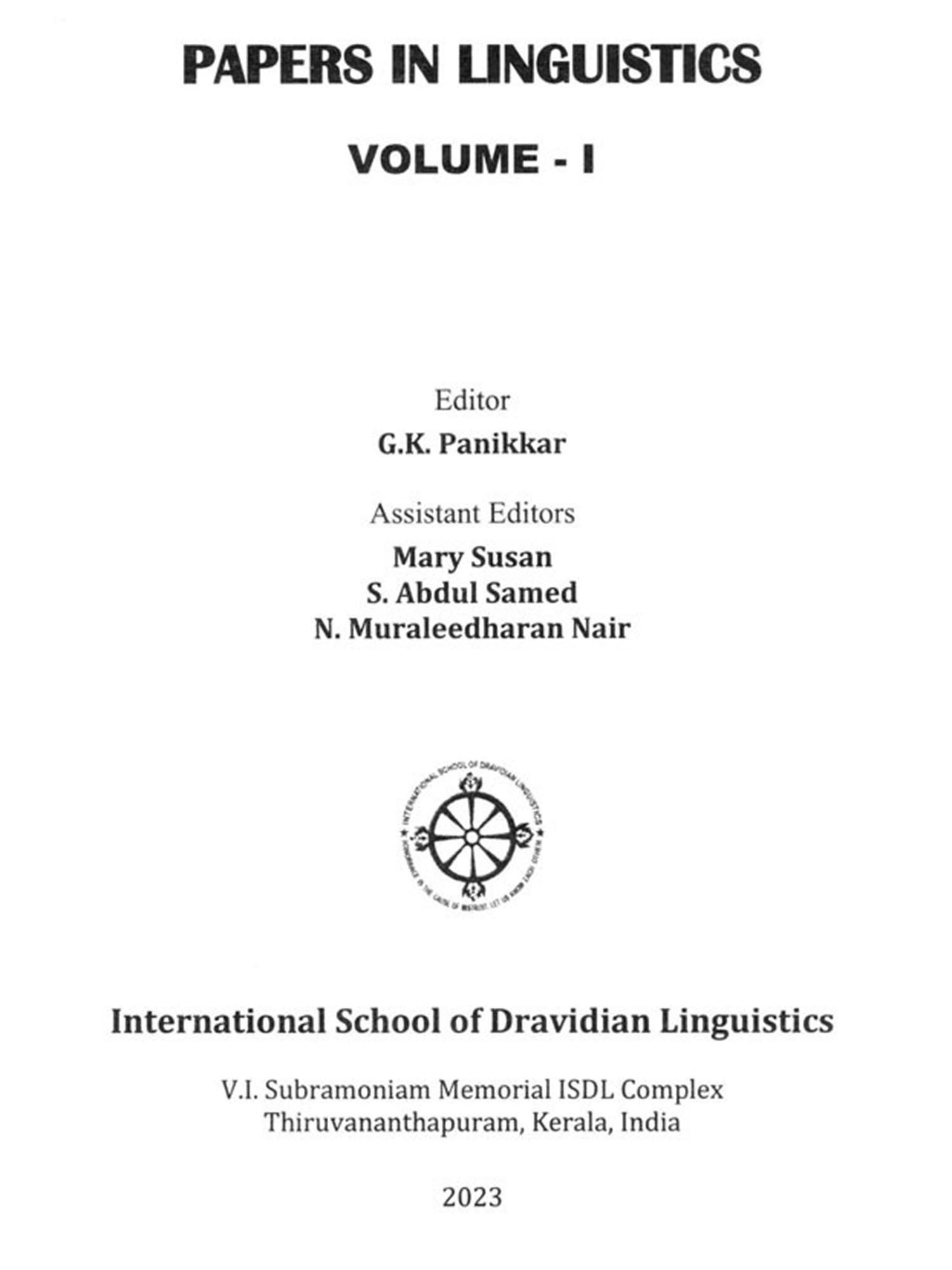 The present publication 'Papers in Linguistics Vol. I' is brought to light with this intention. Those papers which could not be incorporated in this volume will be included in the next volume i.e., 'Papers in Linguistics Vol. II'. I am sure, as usual, this publication of the International School of Dravidian Linguistics will be whole heartedly received by the enthusiastic researchers in linguistics and allied fields. We seek the support and cooperation of the researchers in linguistics both from India and abroad in future also.