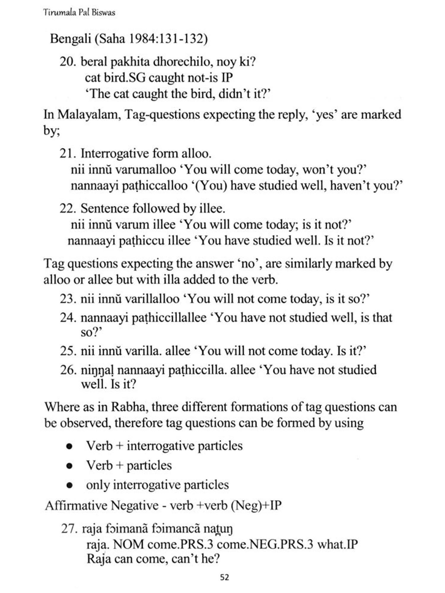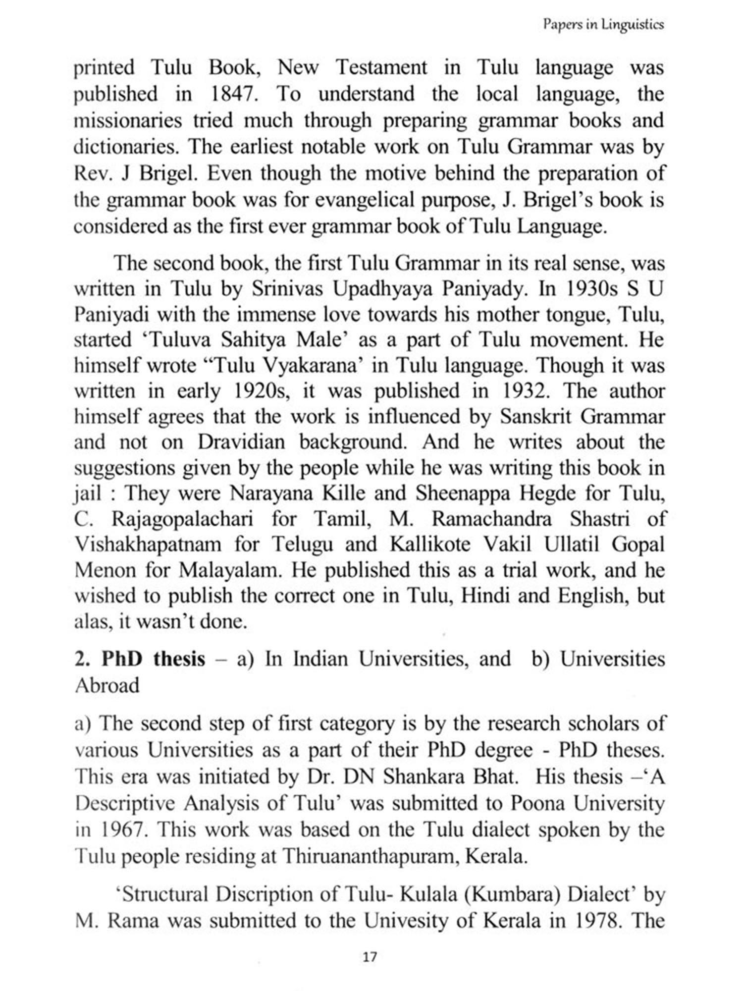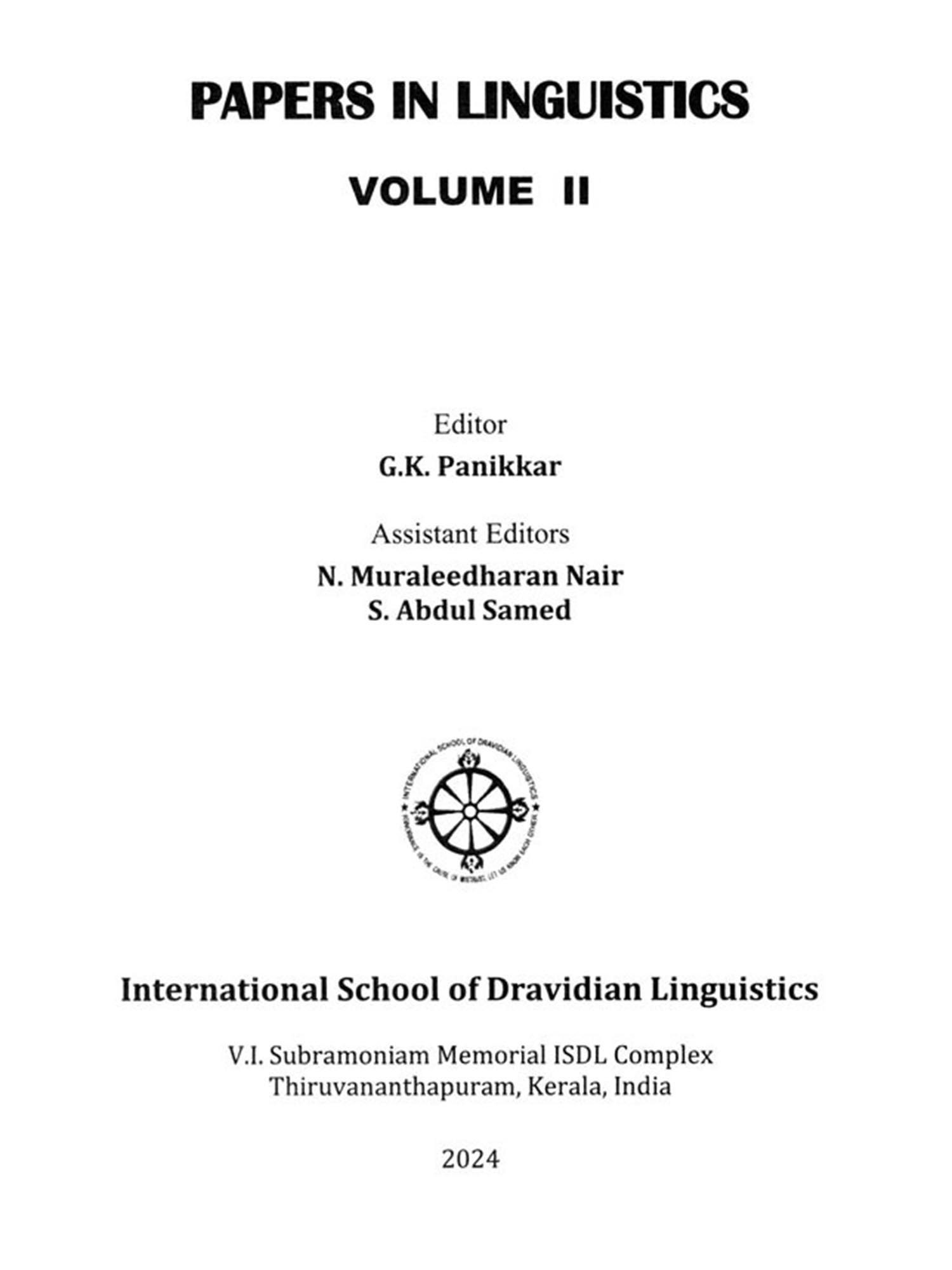 The International School of Dravidian Linguistics (ISDL) used to organize Seminars, Symposia and Workshops on various topics concerning Indian languages in general and Dravidian in particular. This institution gives utmost importance to our traditional wisdom and hence research projects are taken up on Indian grammatical tradition, morphological characteristics of Indian languages, linguistic features of folklore and riddles etc. At the same time care is taken to give due importance to the new trends in the field of linguistics both theoretical and applicational. Due to persistent requests from scholars, we have decided to publish selected papers from those presented at ISDL forums. The present publication Papers in Linguistics Vol. II, just like Vol. I, is a collection of ISDL Seminar / Conference / Workshop papers. This volume comprises articles of Senior Professors and also of young researchers.