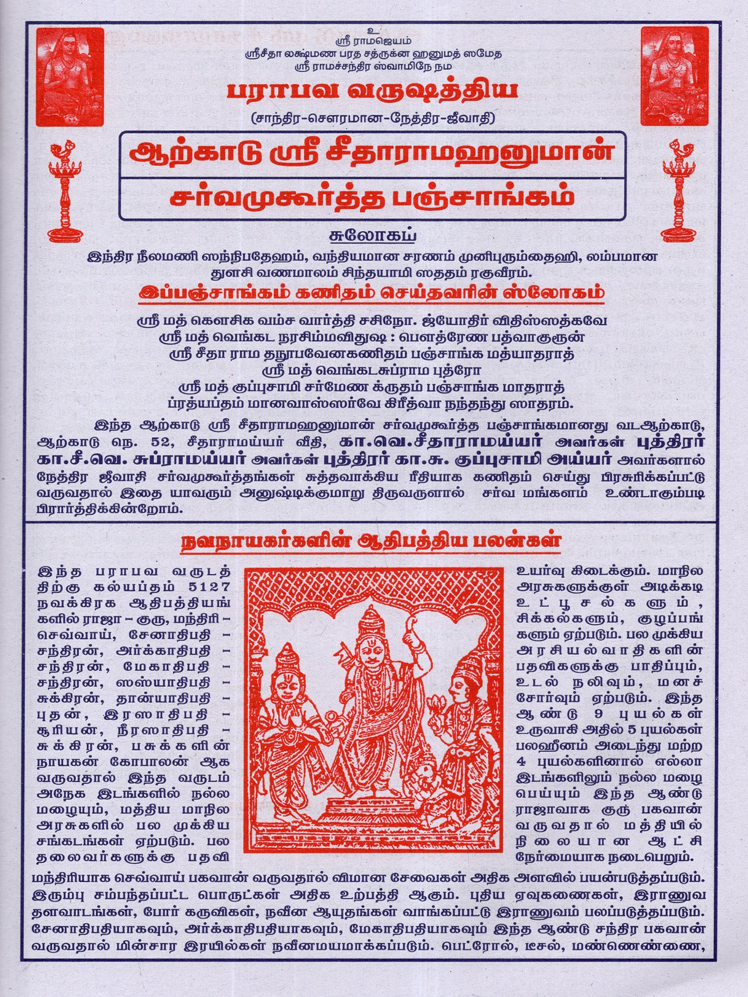 Manimekalai Sacred Ganith Panchang From 2010 Vikruthi to 2020 Sarvari (Tamil)