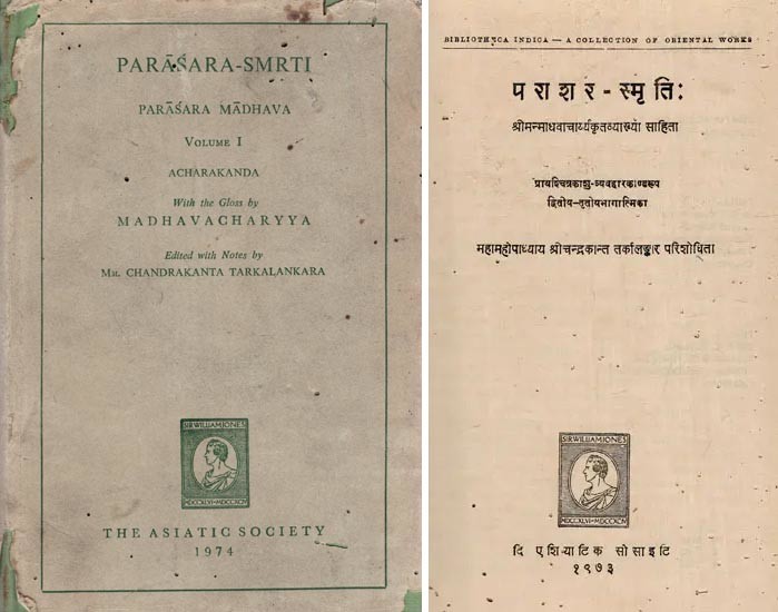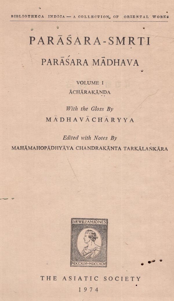 Parasara- Smrti- Parasara Madhava Acharakanda with the Gloss by Madhavacharyya (An Old and Rare Book in Set of 2 Volumes in 3 Parts) With Pin Holed